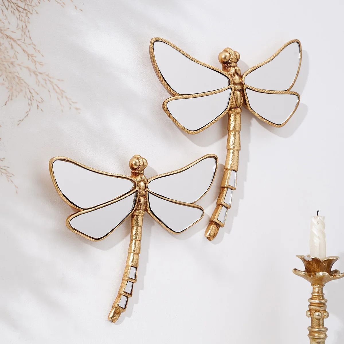 Golden Curly Tailed Dragonfly Wall Decor Mirror Finished Resin Craft Luxury Furniture & Home Art Accent gold