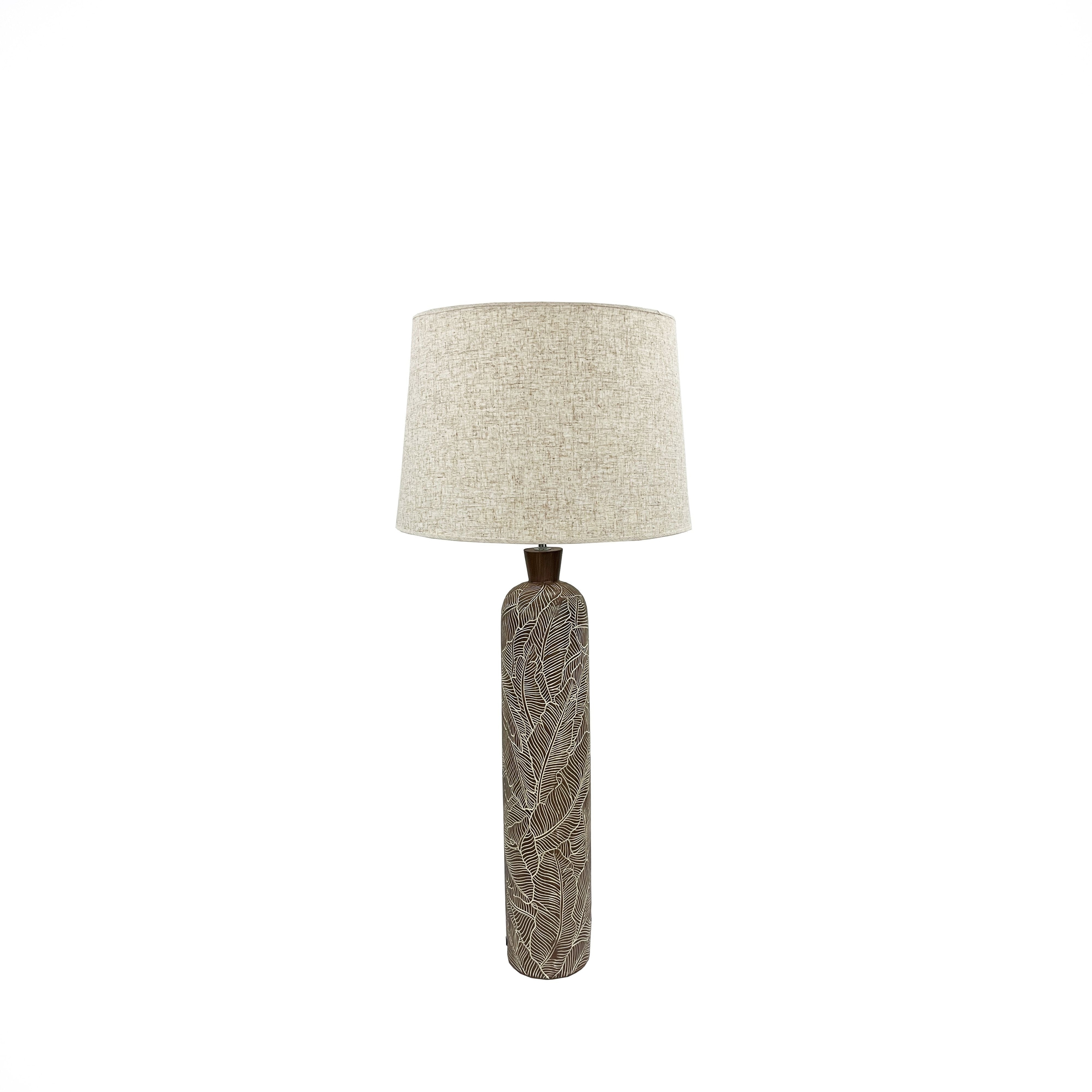 Brown 38 Inch Textured Resin Floor Lamp with Neutral Linen Drum Light
