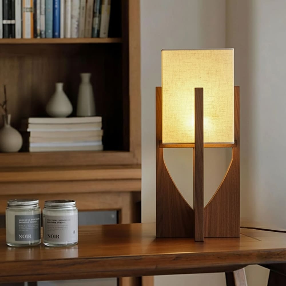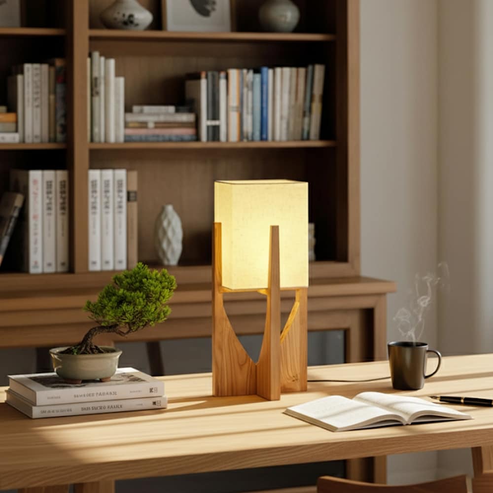 Solid Wood Modern Floor Lamp with Fabric Shade