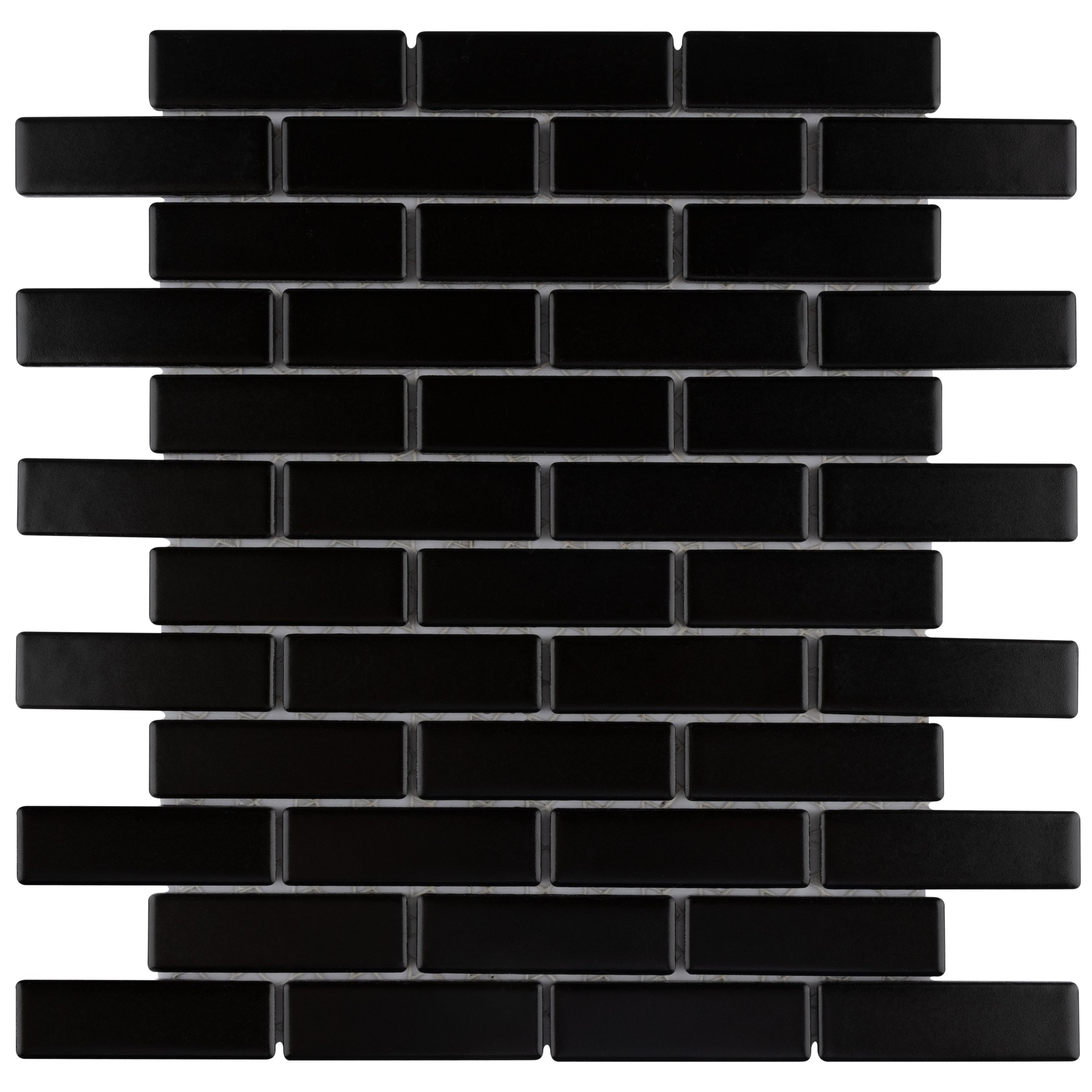 Merola Tile Metro Brick Subway Matte Black 11-1/2" x 11-3/4" Porcelain Mosaic Floor and Wall Tile