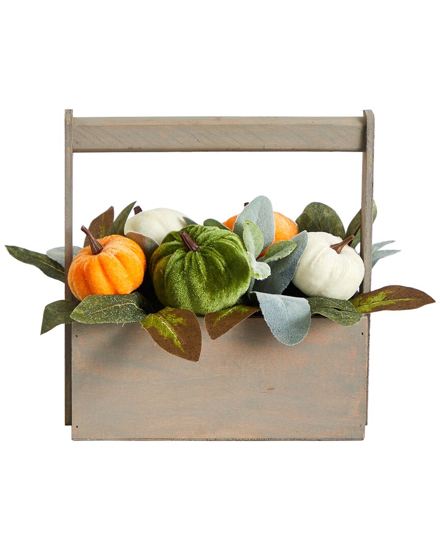 Nearly Natural 10In Fall Pumpkin Artificial Autumn Arrangement In Wood Basket
