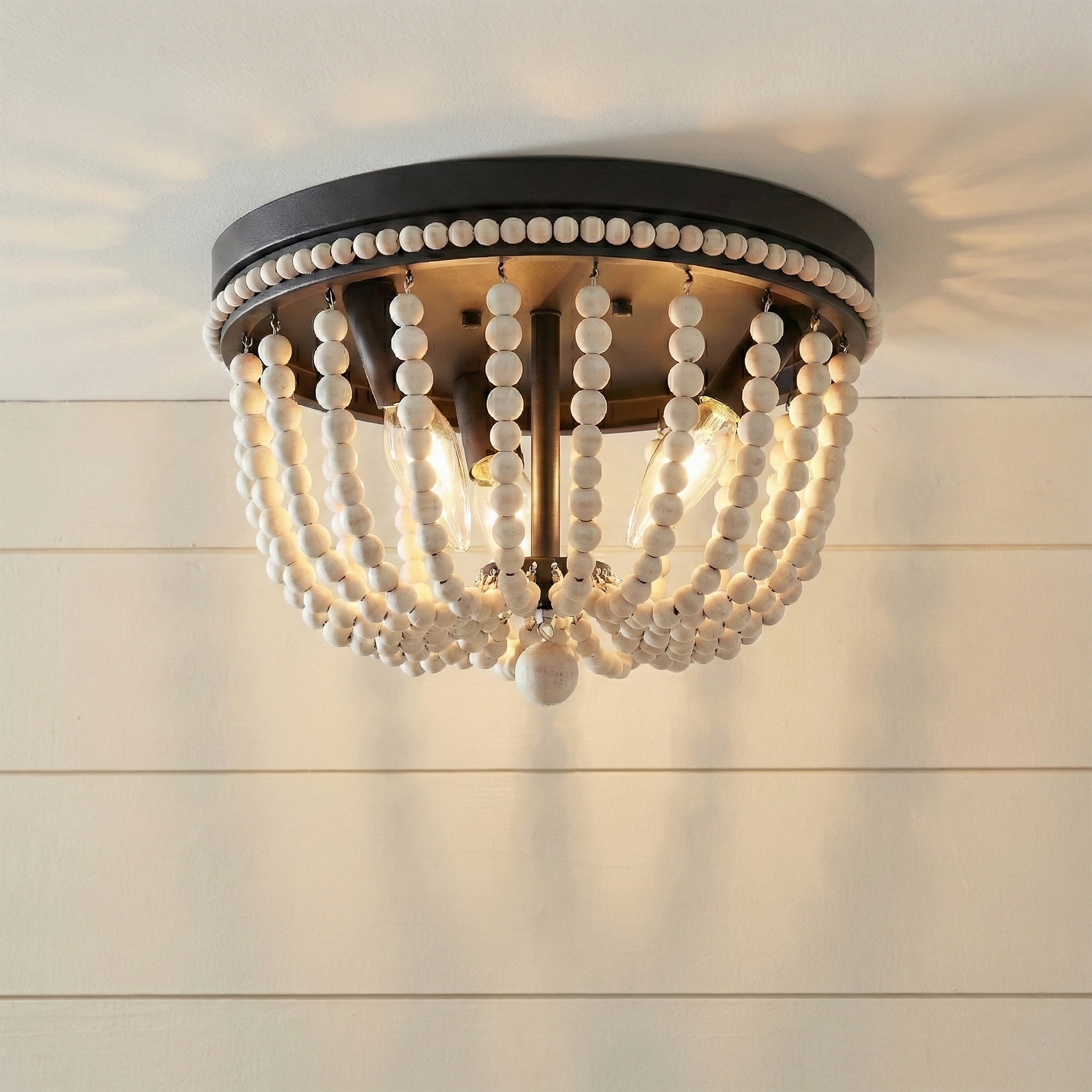 Fidenza 3-light Boho Beaded Flush Mount Ceiling Light Farmhouse Coastal Dome Lighting - 12 inches