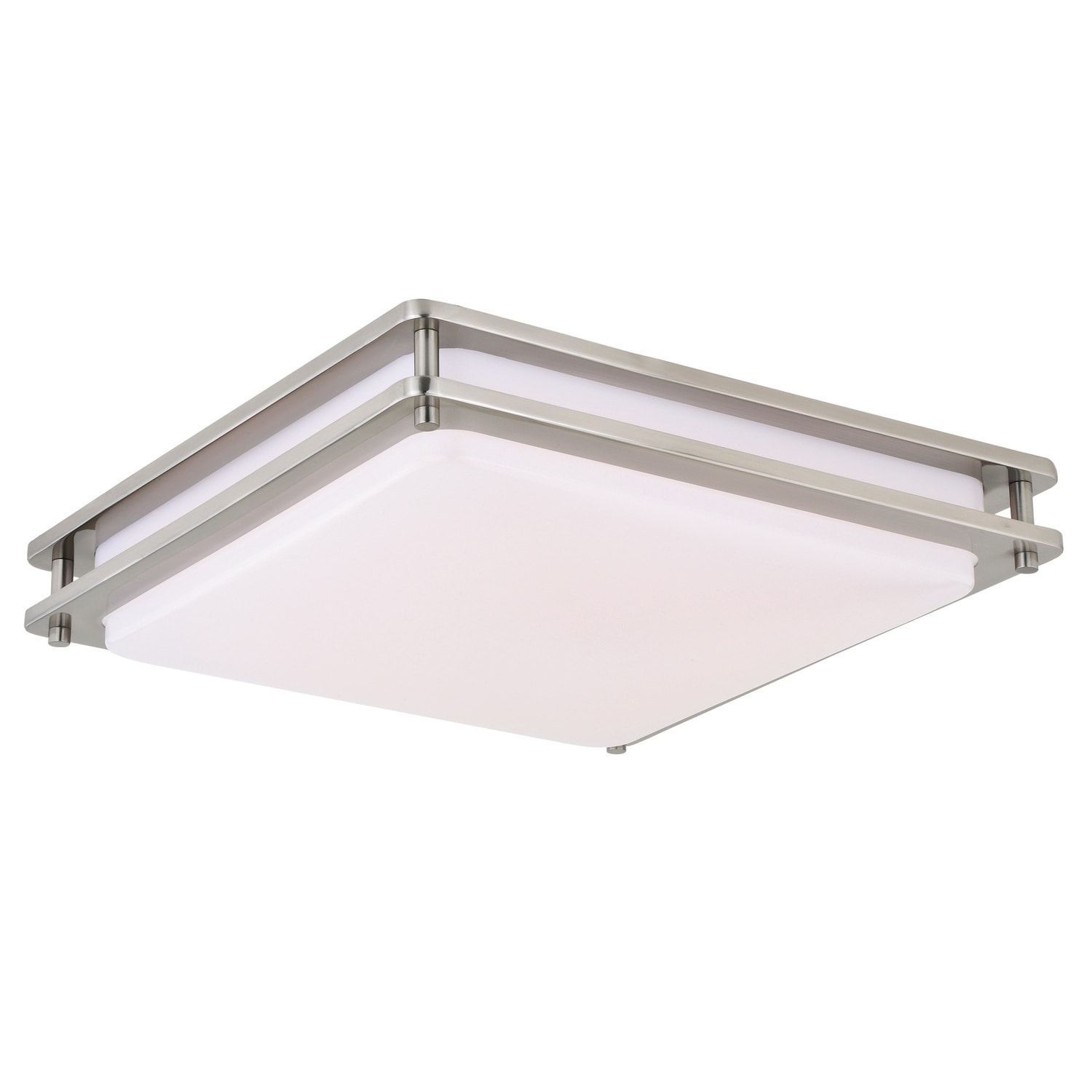 Flush Mount Ceiling Light - Satin Nickel Finish, White Shade - 16 Inch Modern Light Fixture - 3.5