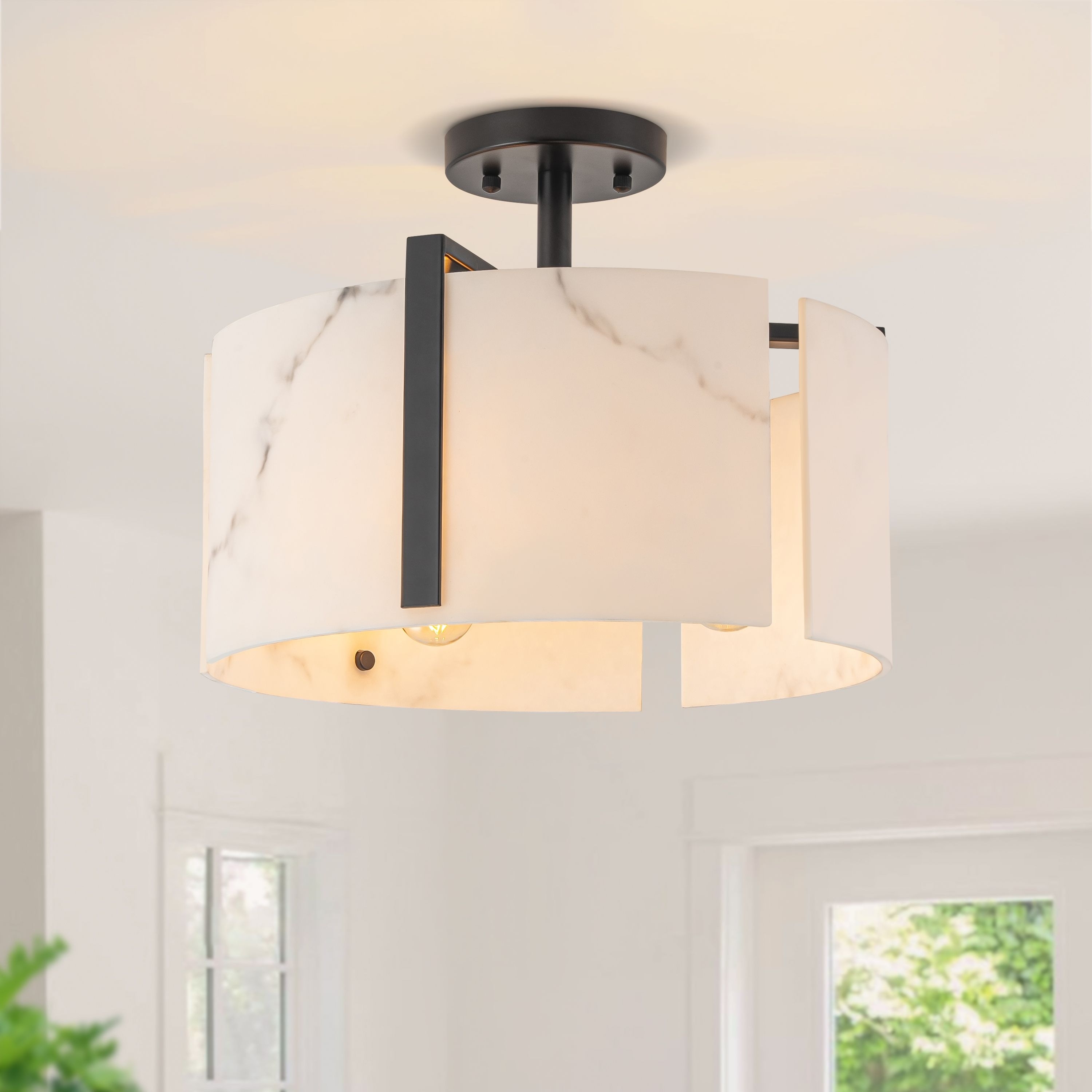 Starsky 3-Light Natural Alabaster Semi Flush Mount with Unique Texture