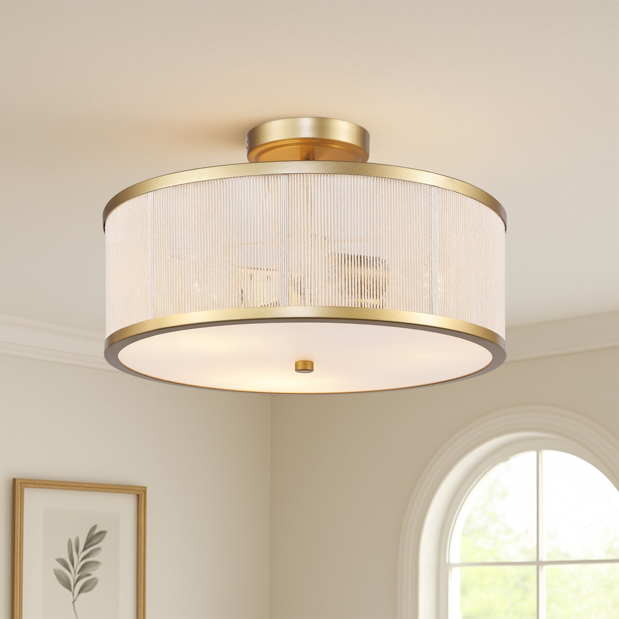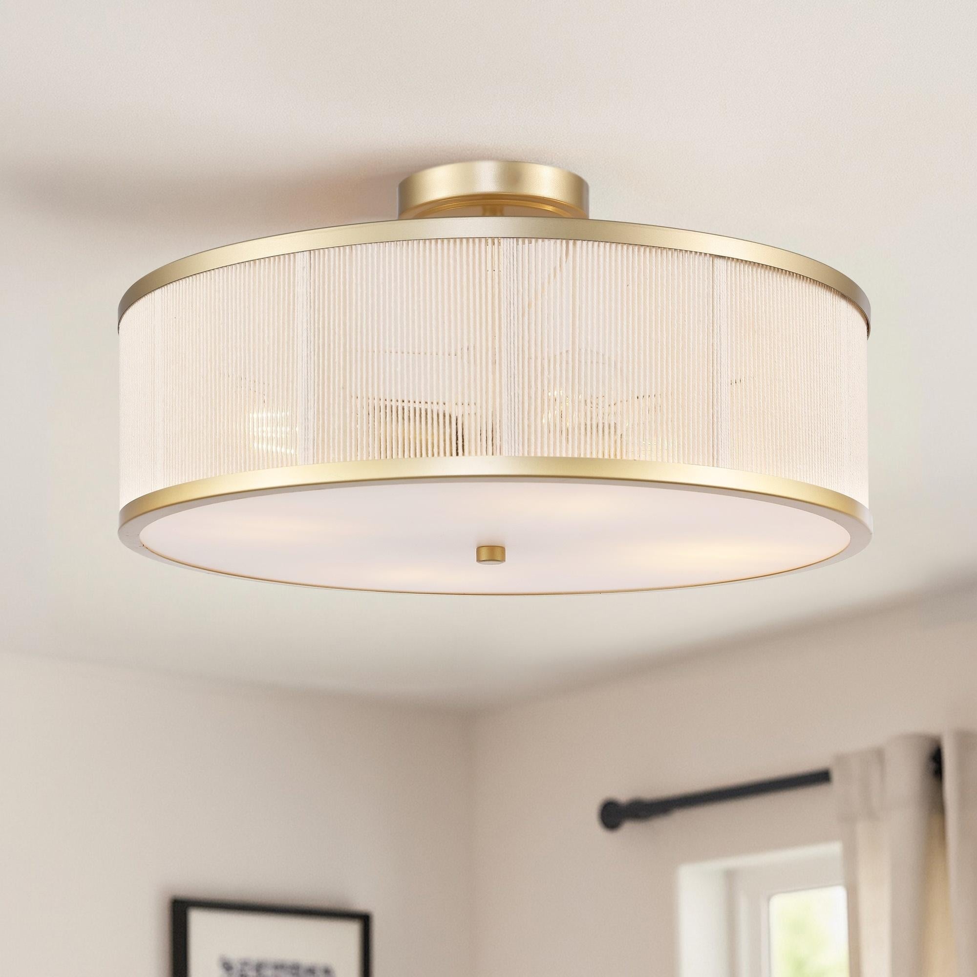 18.5 in. Modern Retro Brushed Gold Drum Integrated LED Semi-Flush Mount Light - 18.5 in. W x 12.9 in. H