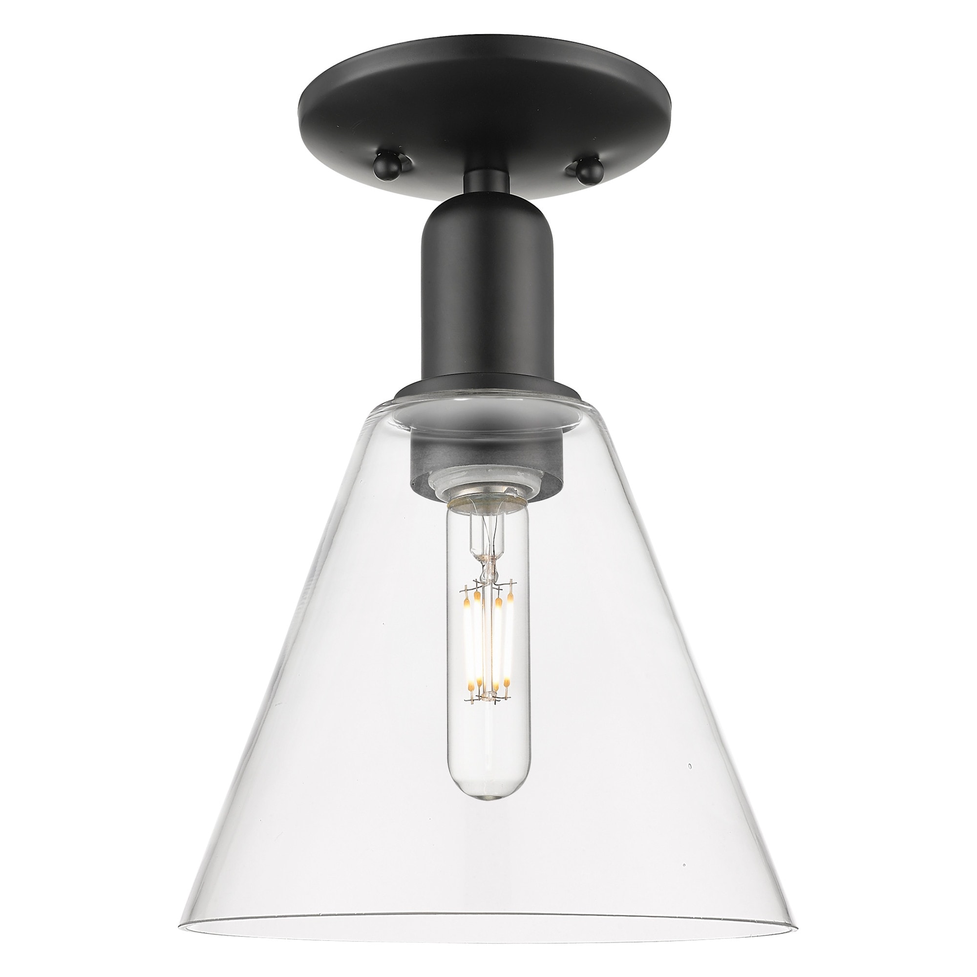 Compact 24W Flush Mount Ceiling Light with Sleek Black Glass Shade - 6 Inch