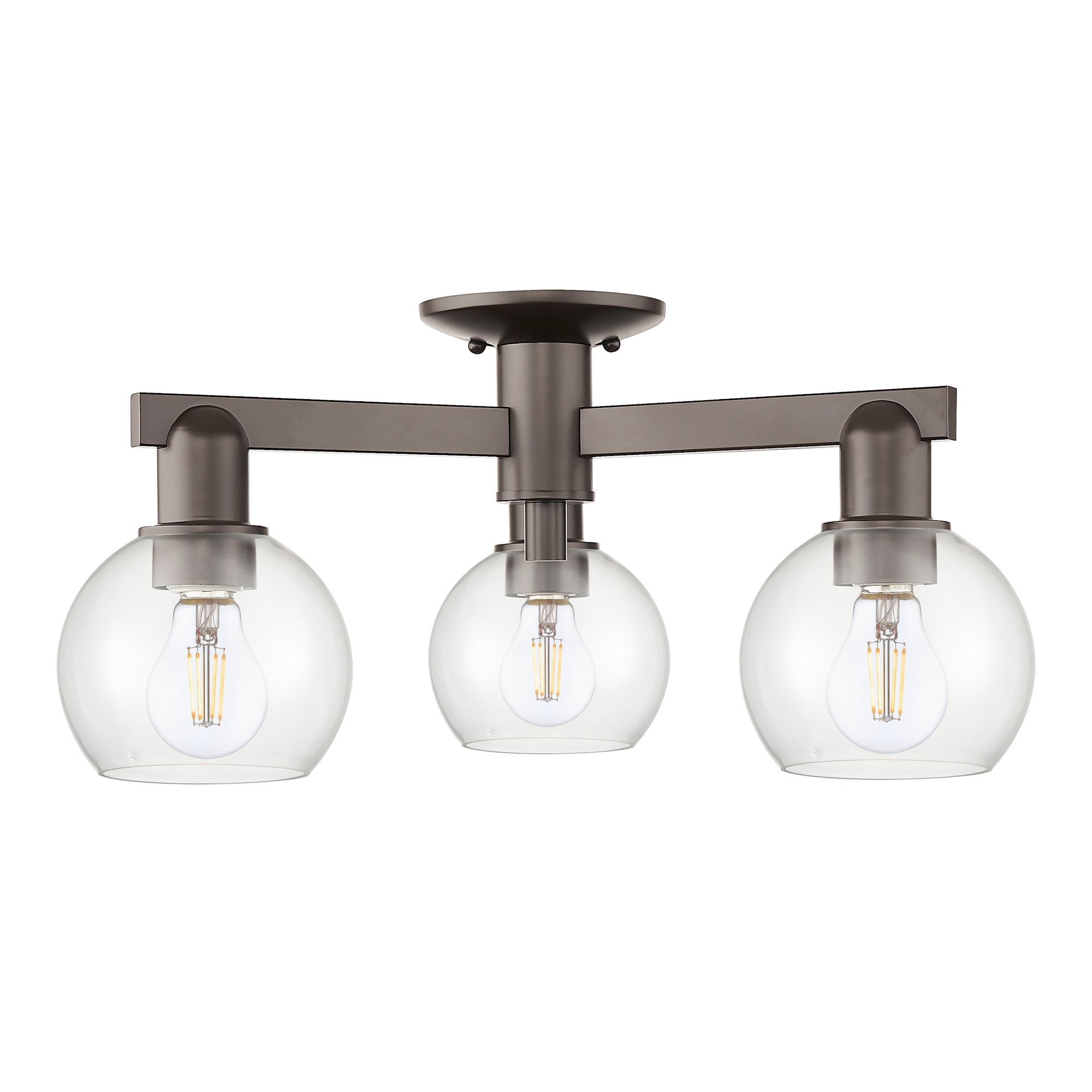3-Light Industrial - Style Black - Framed Clear Glass Globe Flush Mount Ceiling Light - Matte Black