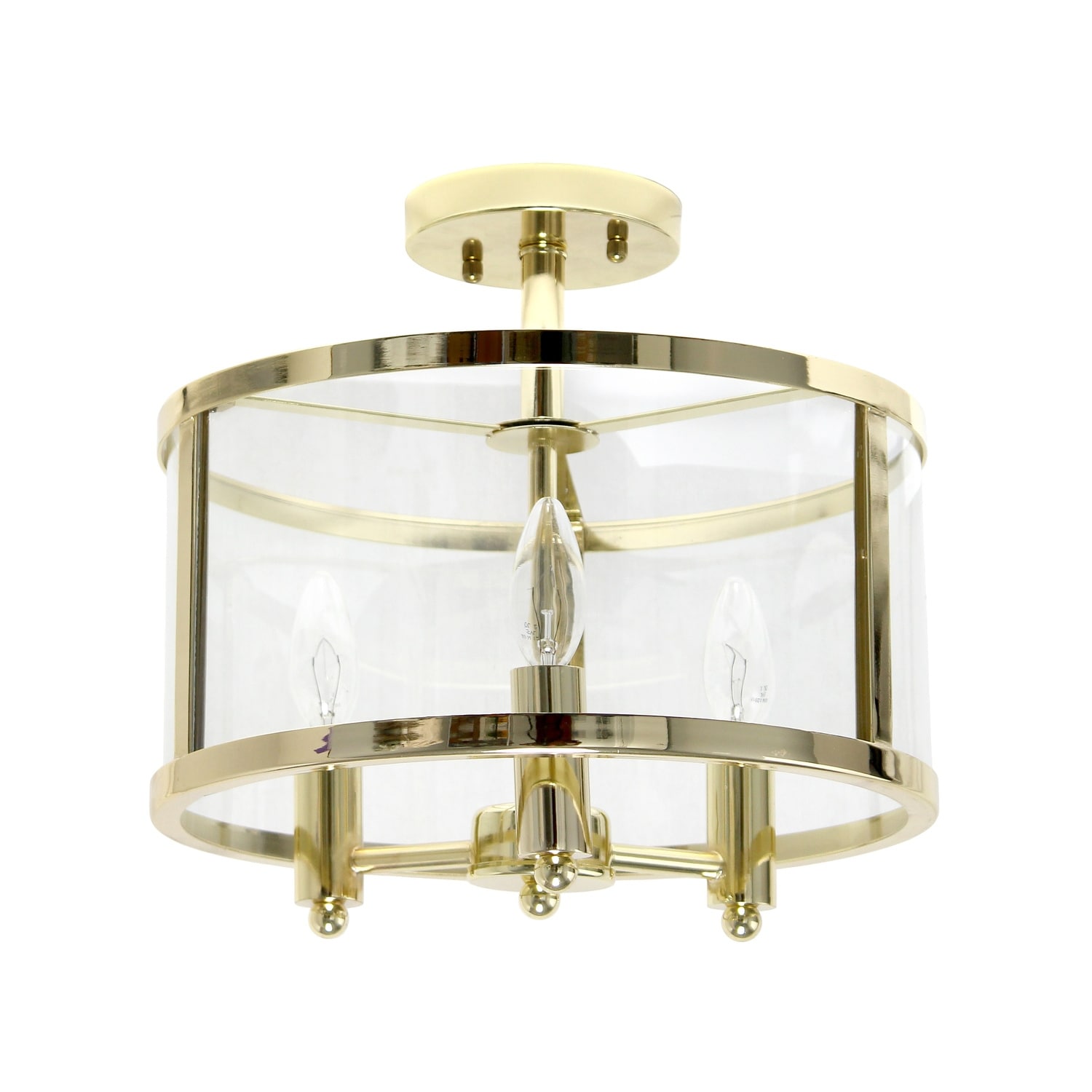 HomeStock 13" Semi-Flushmount Light - Gold 3-Light Fixture - Iron & Glass Shade - Traditional Industrial Design - 12.5