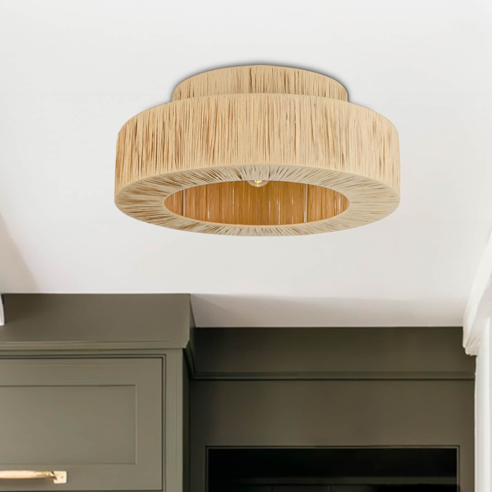 Maxax 1 - Light Raffia Dimmable Metal Drum Flush Mount