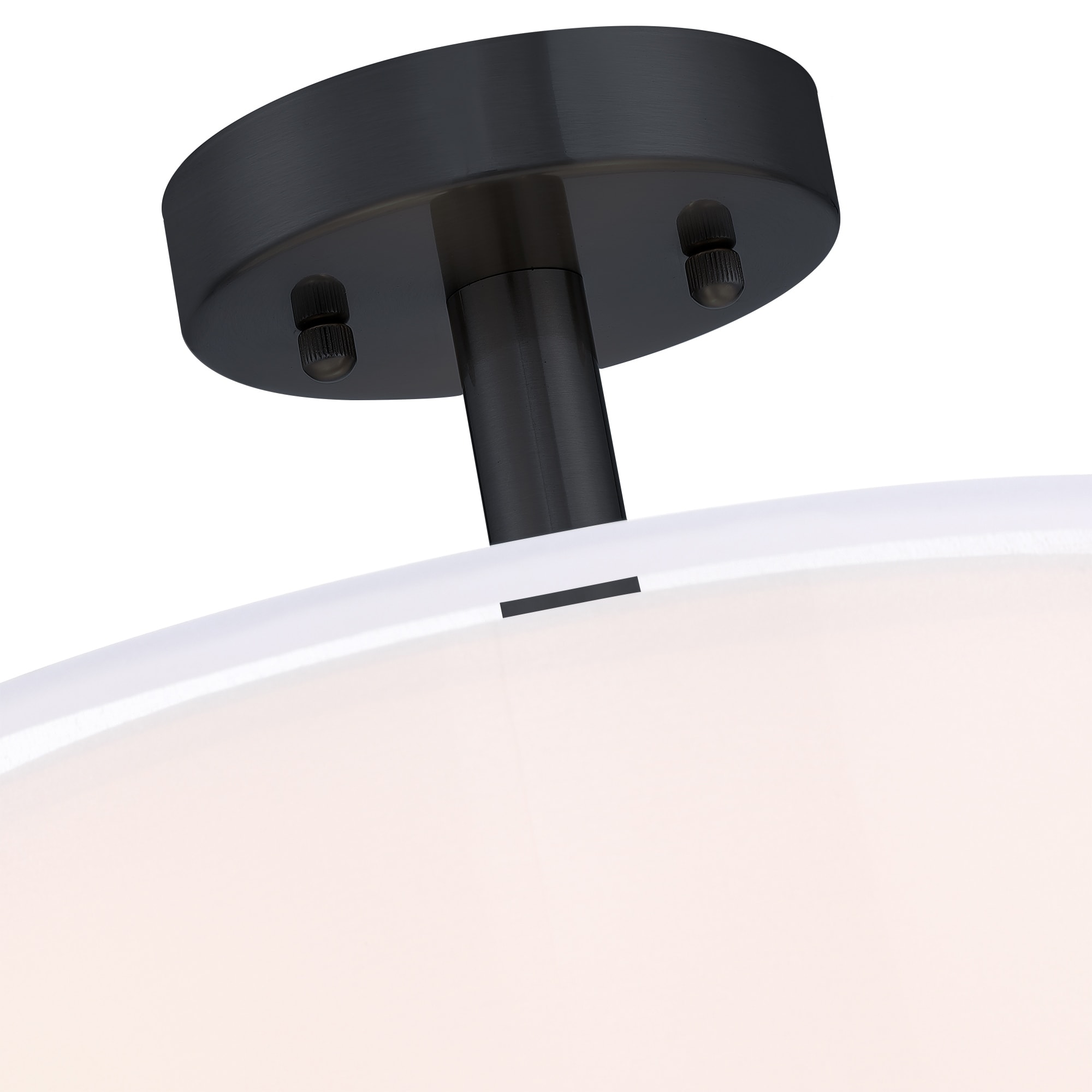 3-Light 11-in Matte Black Semi Flush Mount Light With Fabric Shade - 12-in