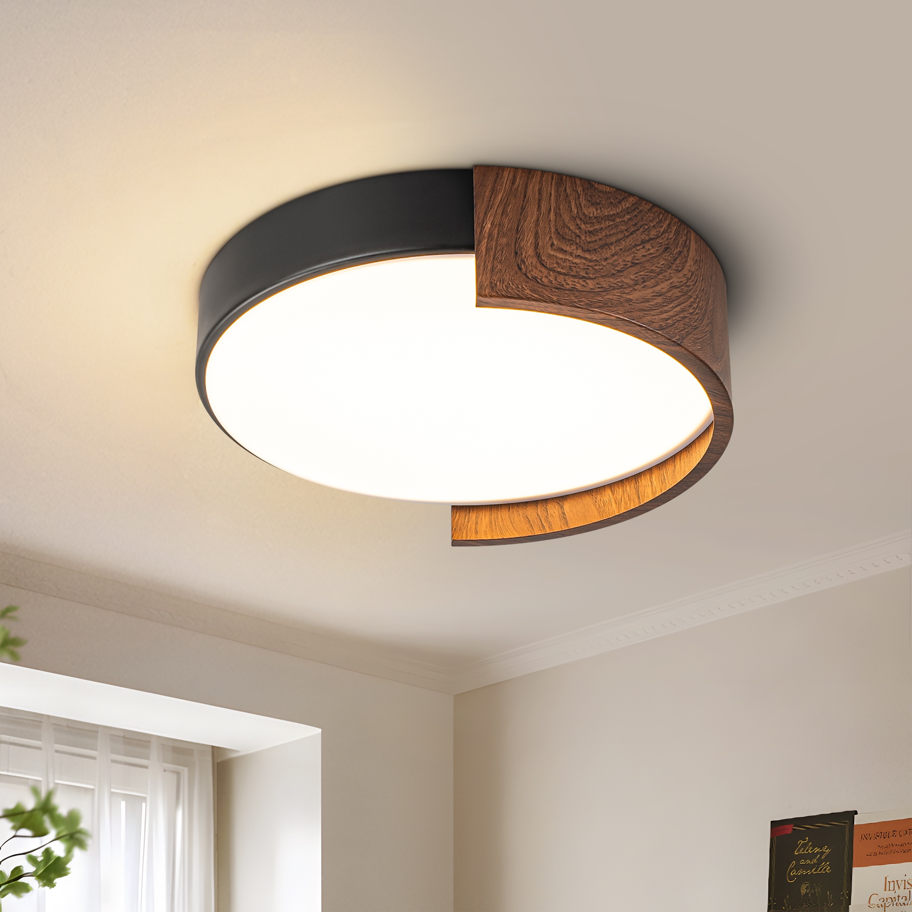 Starsky 5CCT LED Round Wooden Flush Mount - 11.81''