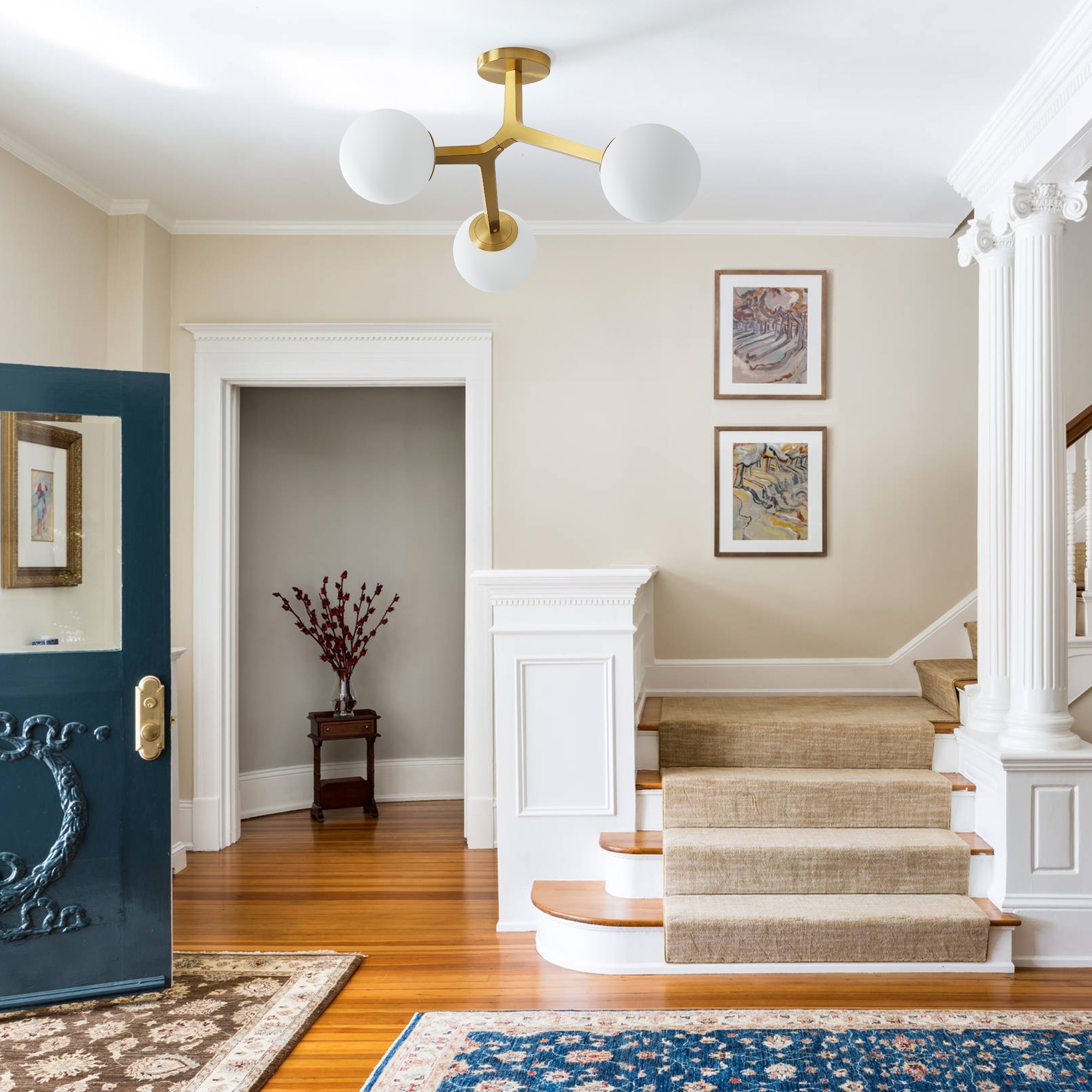 Yep by Golden Lighting Orwell 3-light Flush Mount in Brushed Champagne Brass and Navy Blue shade - Gold