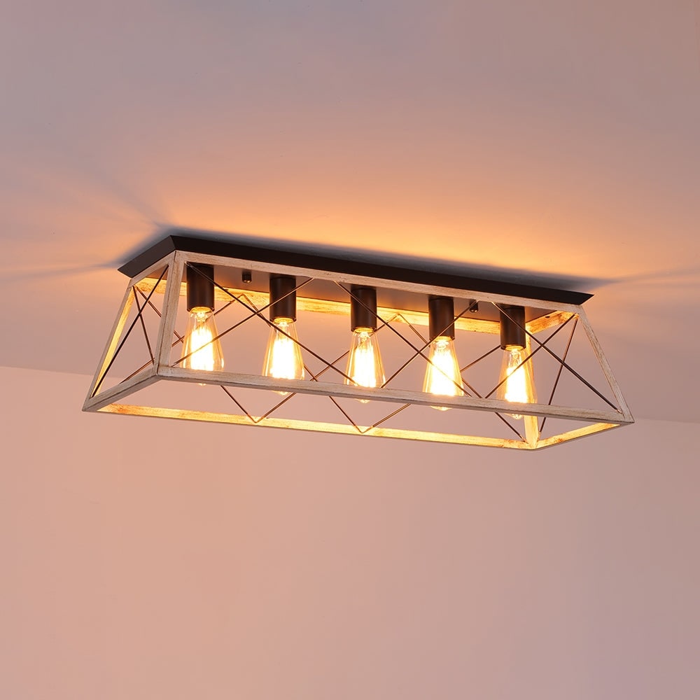 Rustic 5-Light Rectangular Cage Flush Semi Flush Mount - 31.5in