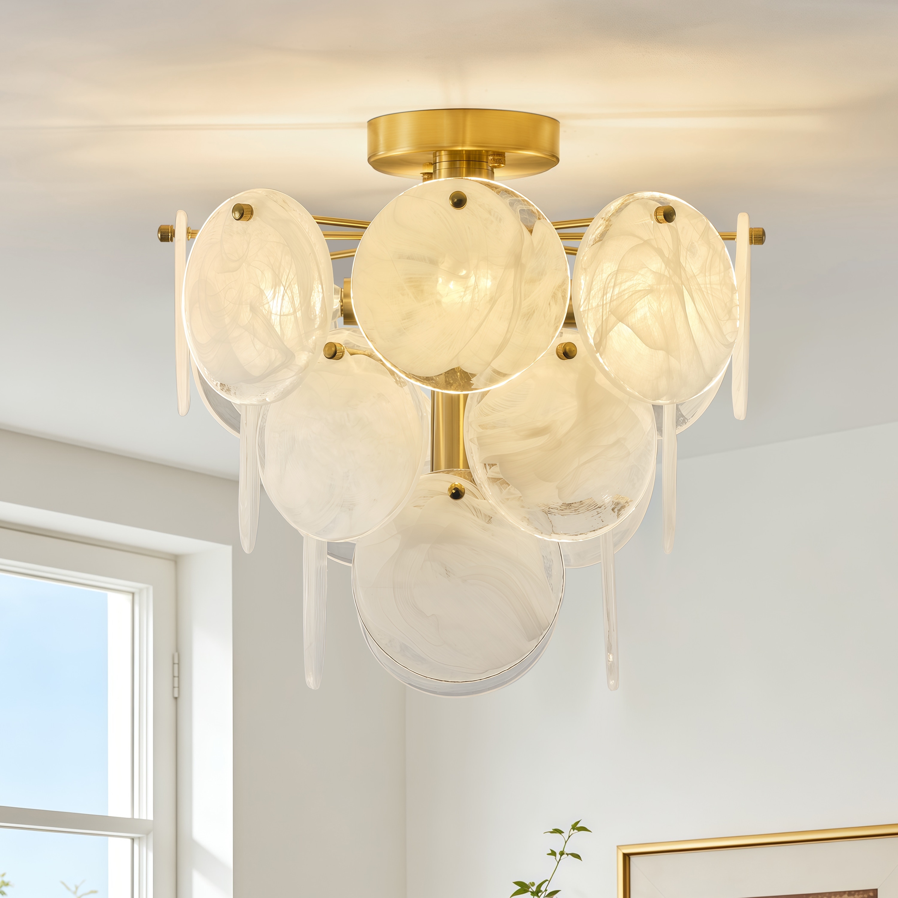 Contemporary Glam Tiered Cloud Glass Discs Semi-flush Mount