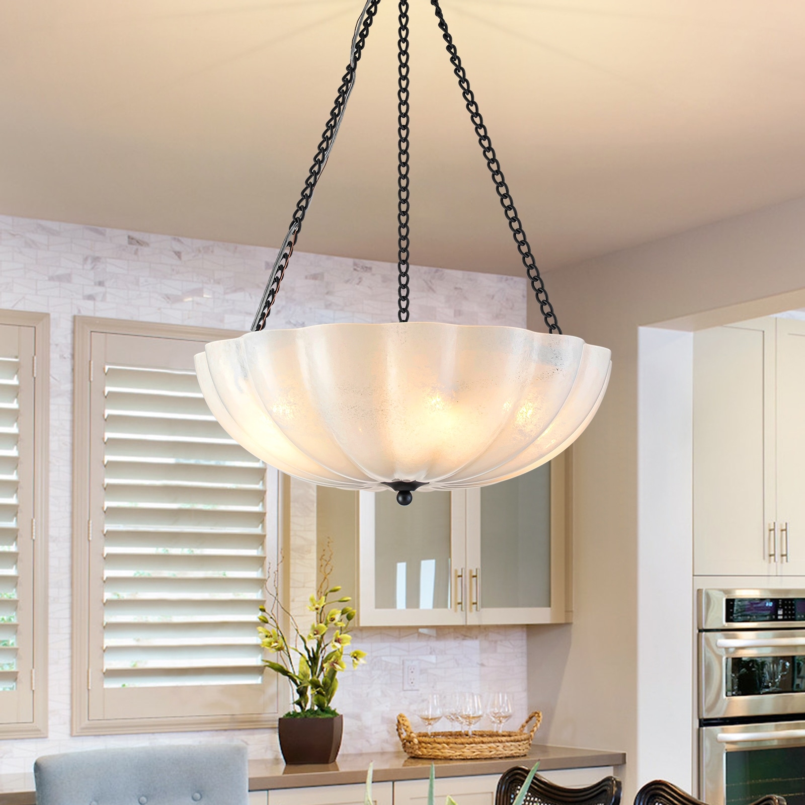 Elegant Gold and Glass Chandelier 3-Light Pendant Light Fixture with Frosted Dome Design