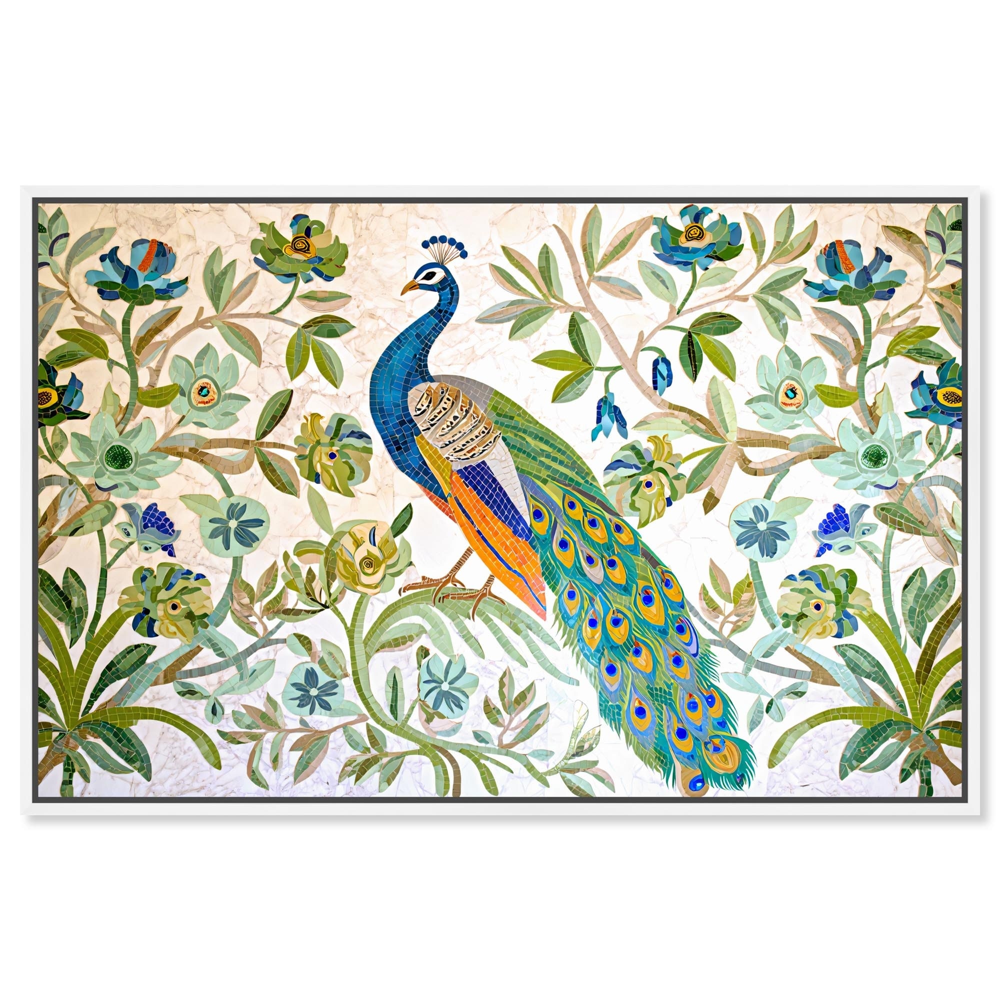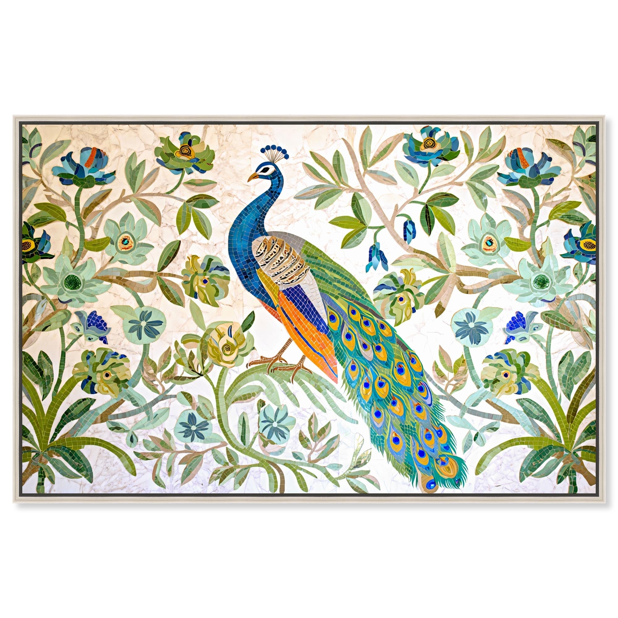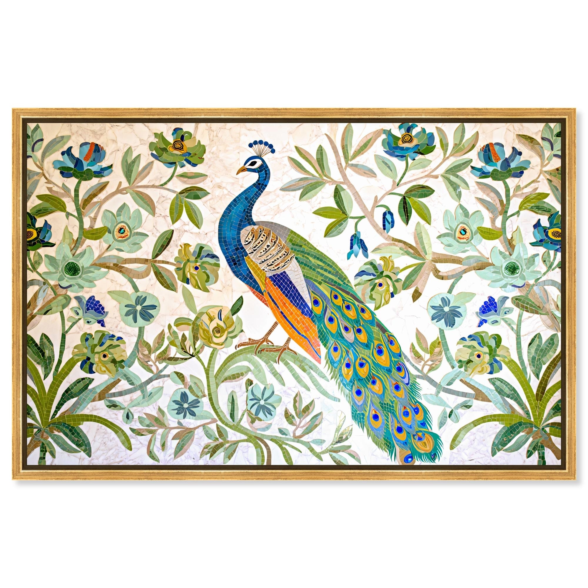 Royal Peacock Vintage Floral Art Framed Canvas Print by Art Remedy