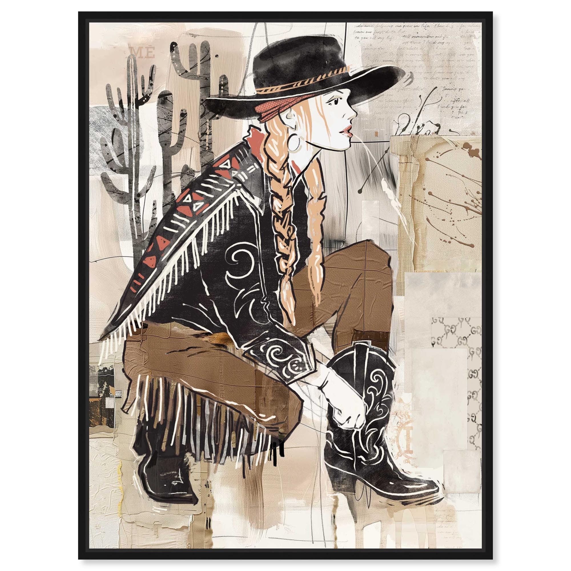 Modern Western Girl II Western Art Framed Canvas Print by Notoriart