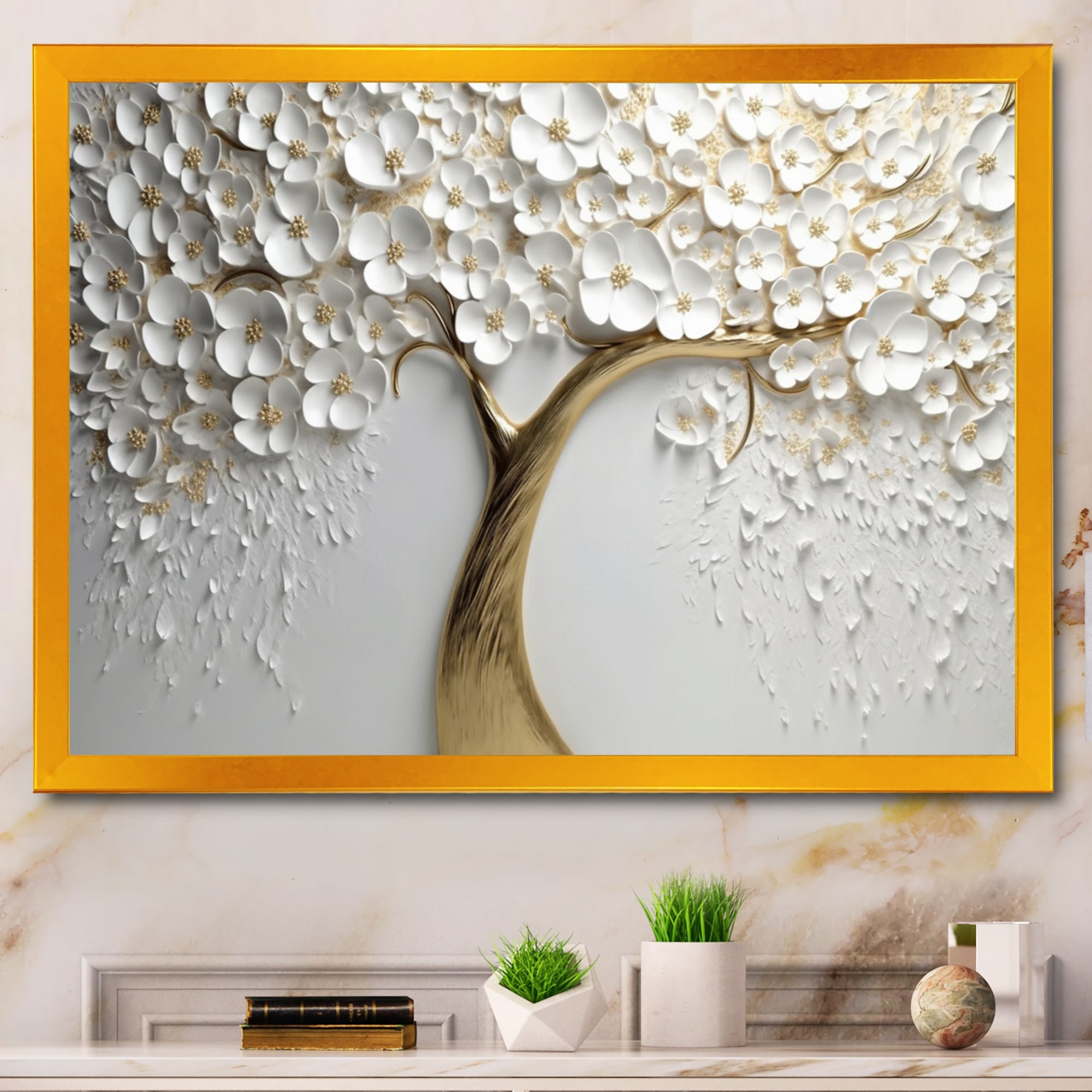 Designart "White Orchid Tree Garden Of Branches V" Tree Floral Framed Canvas Art Print