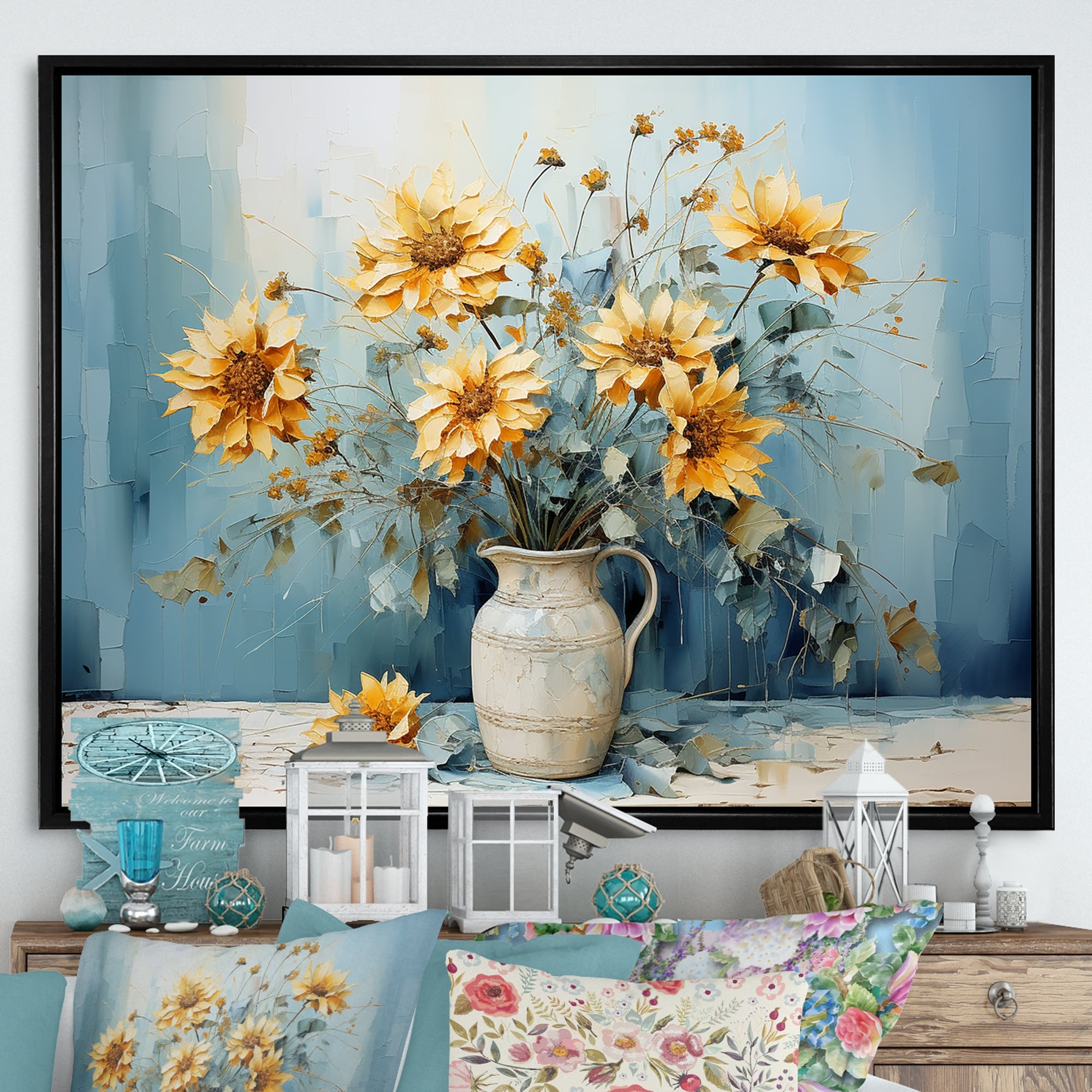 Designart "Blue Sunflowers Farmhouse Still Life " Sunflowers Framed Canvas Art Print