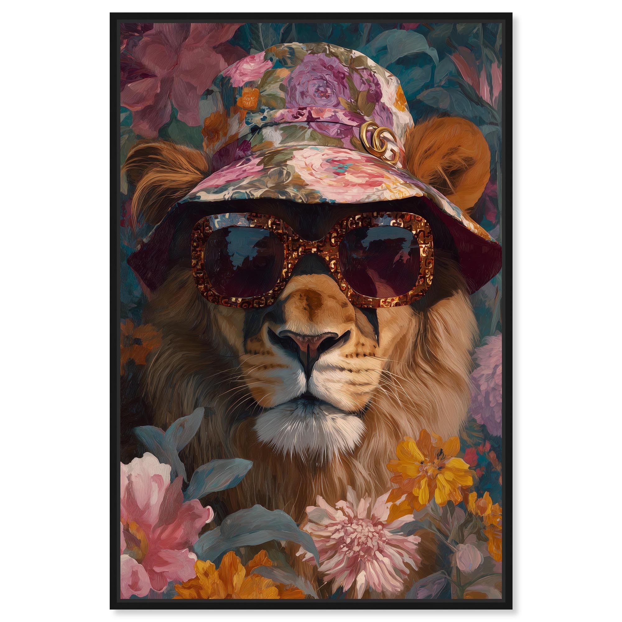 Bloom in Floral Lion Pets Art Framed Canvas Print by Art Remedy