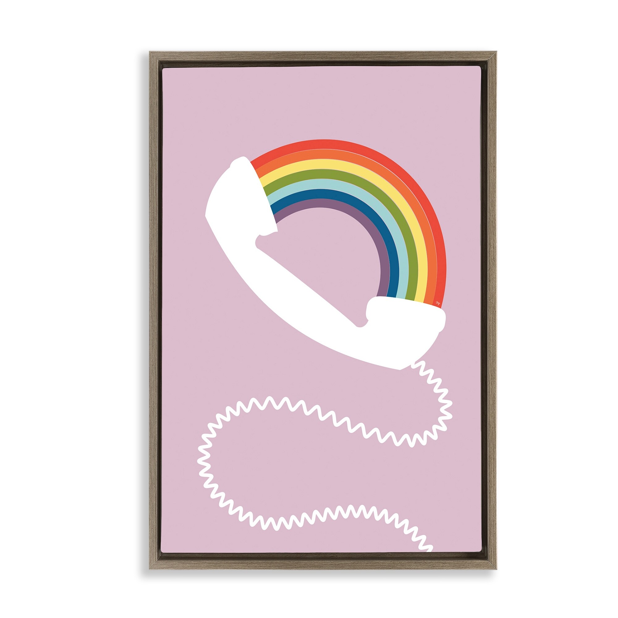 Stupell Rainbow Phone on Pink Framed Floater Canvas Wall Art Design By Martina Pavlova