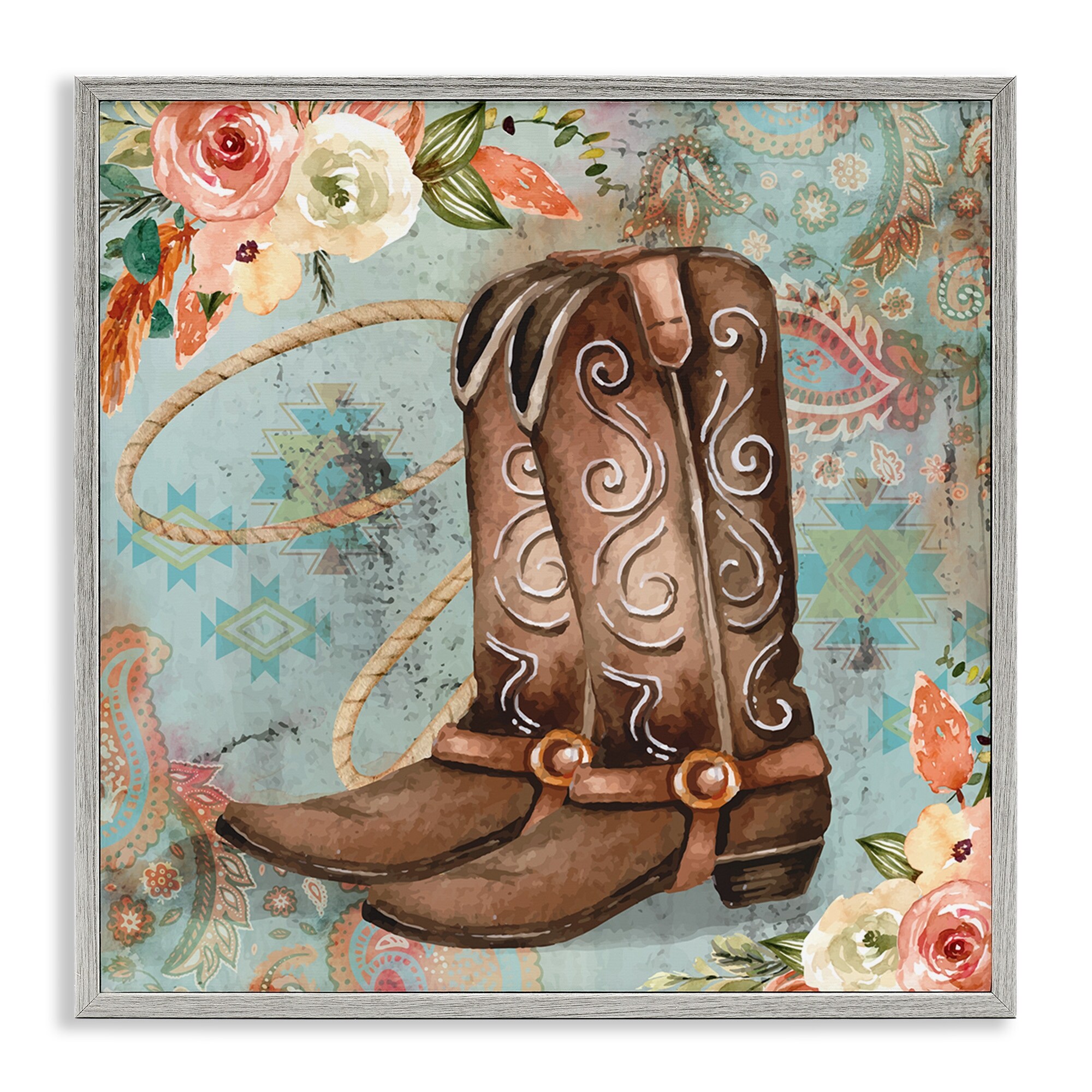 Stupell Cowboy Boots Western Paisley Florals Framed Giclee Art by ND Art