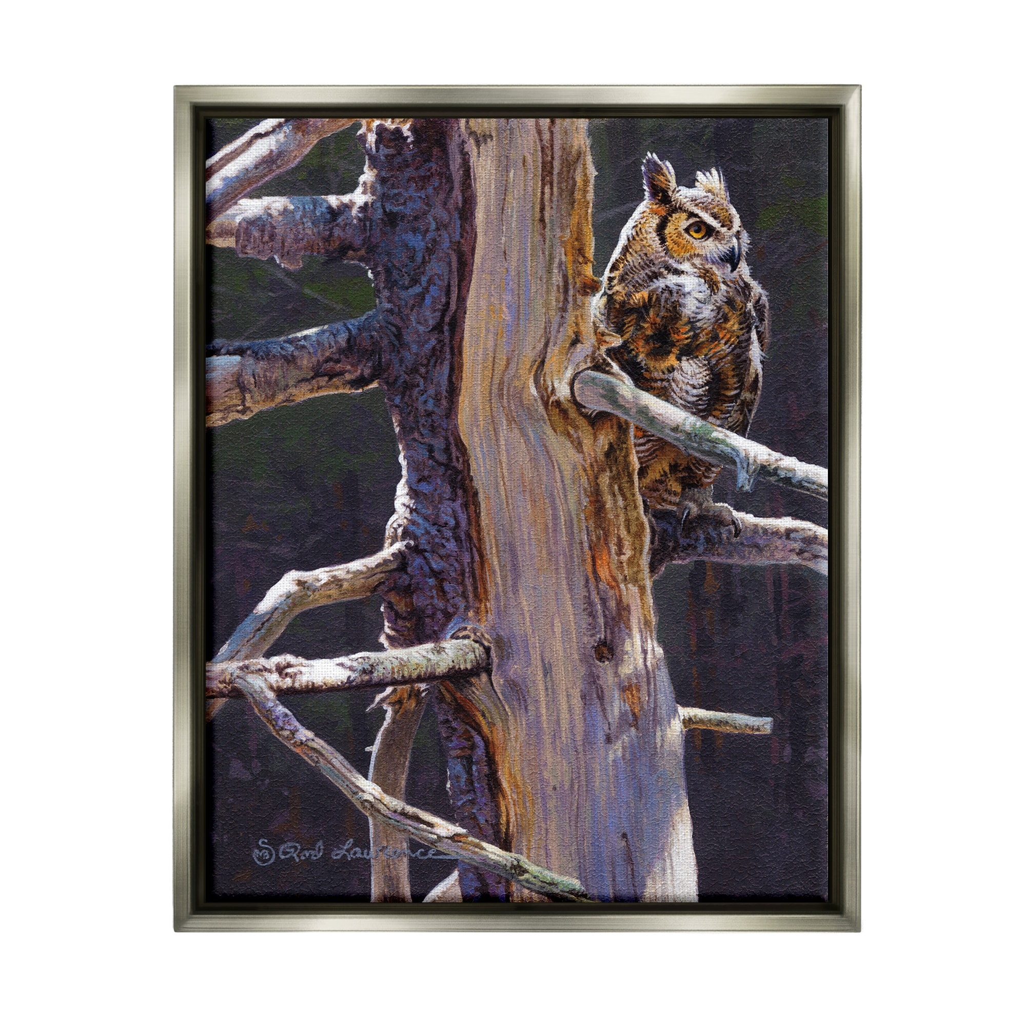 Stupell Owl in Rustic Tree Framed Floater Canvas Wall Art Design by Rod Lawrence