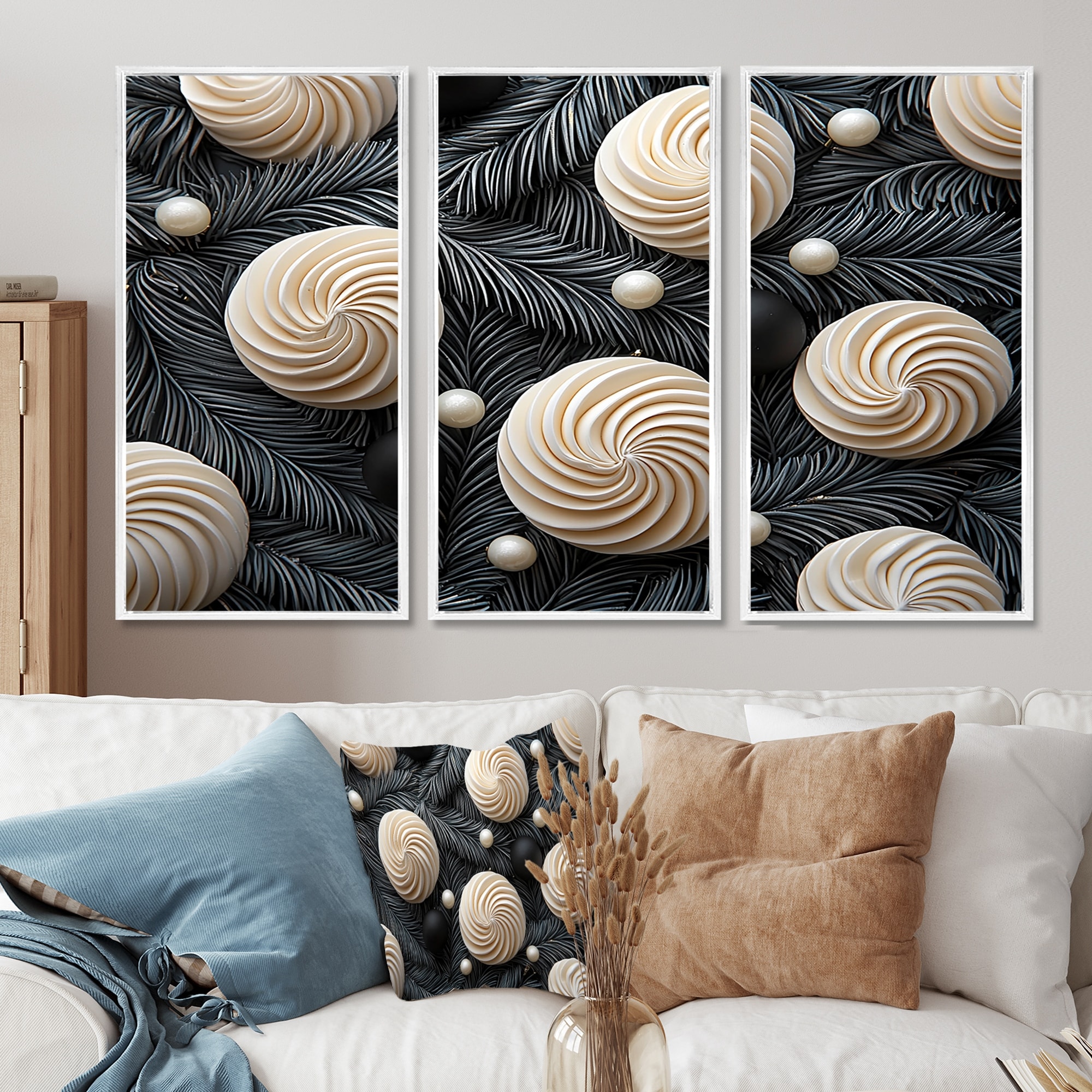 White And Black Christmas Peppermint Swirl I - Christmas Framed Wall Art Set of 3 - Traditional Wall Art 3 Pieces