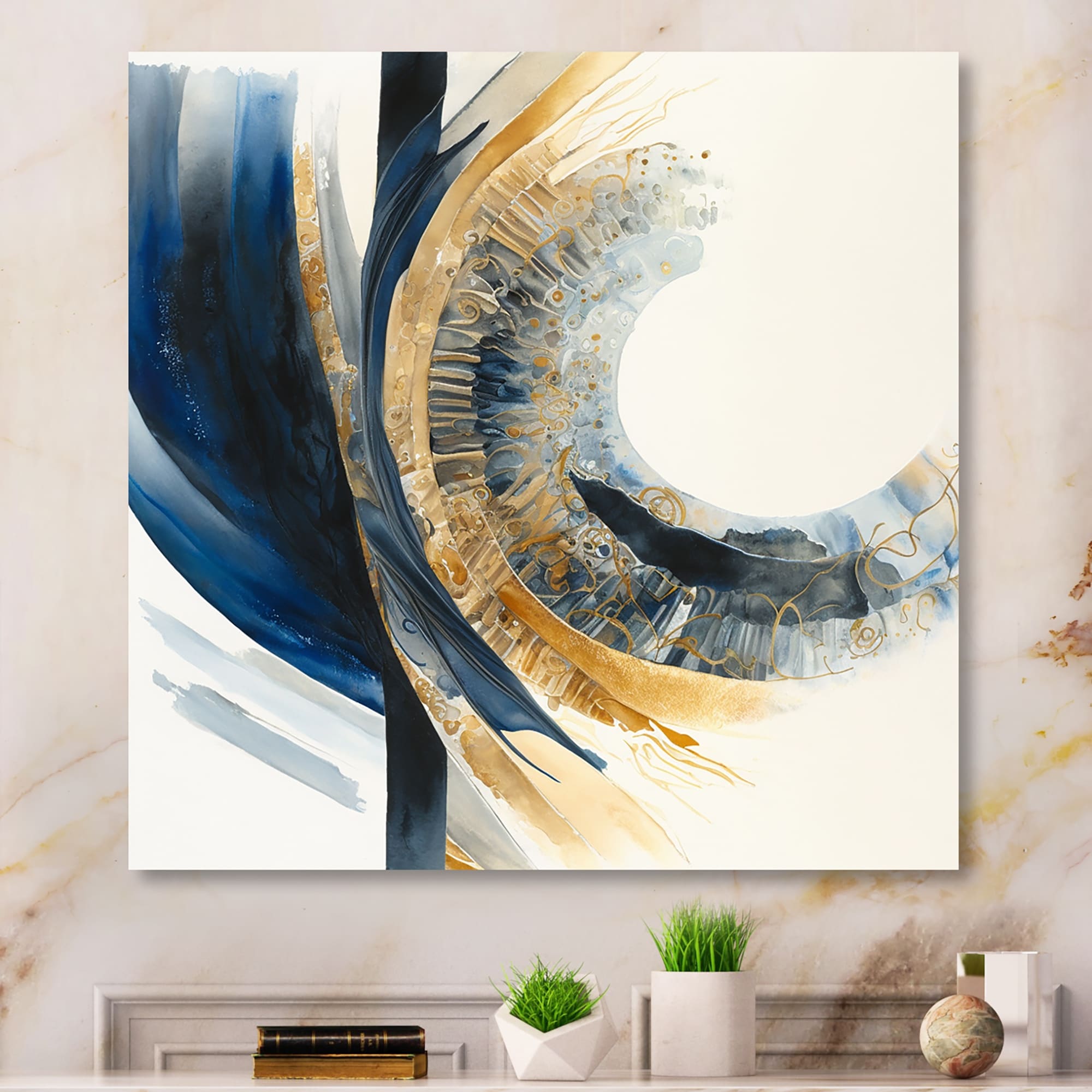 Designart 'Blue And Gold Swirl Abstract IV' Modern Canvas Wall Art