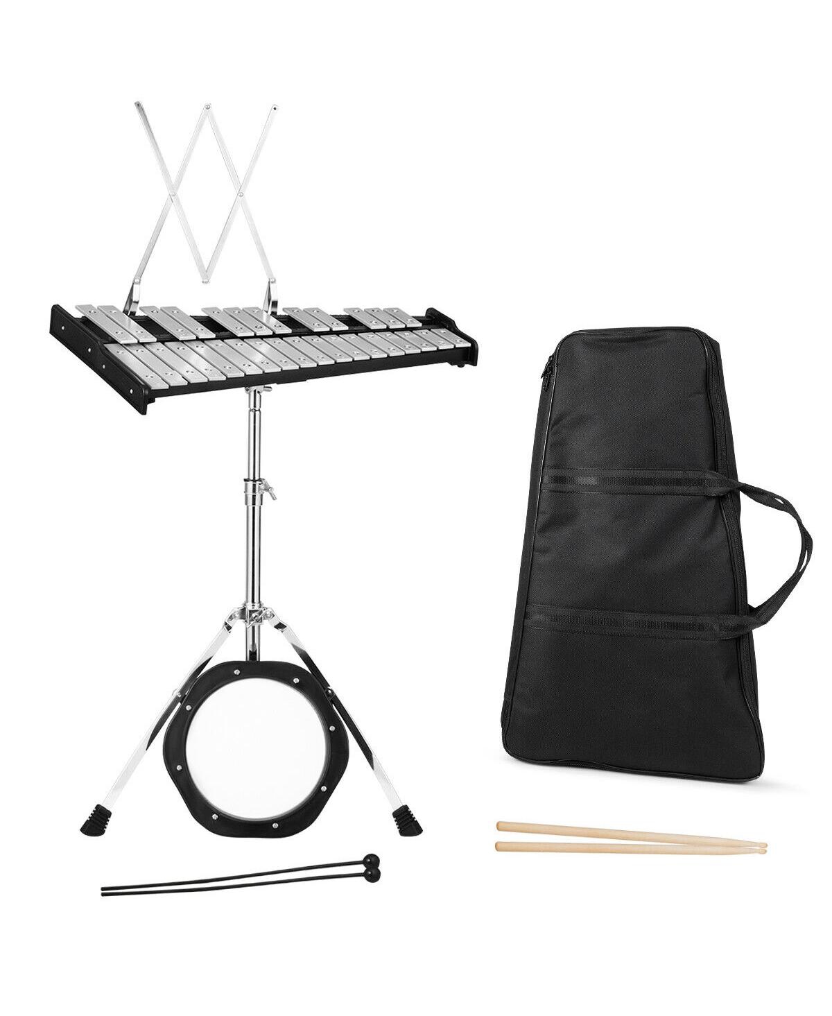 Mecale 30 Notes Percussion with Practice Pad Mallets Sticks Stand - Black