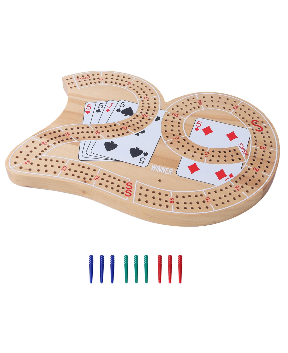 Gse Games & Sports Expert Wooden 3-Track 29 Cribbage Board Game with Plastic Pegs, Classic Three-Person Cribbage Board