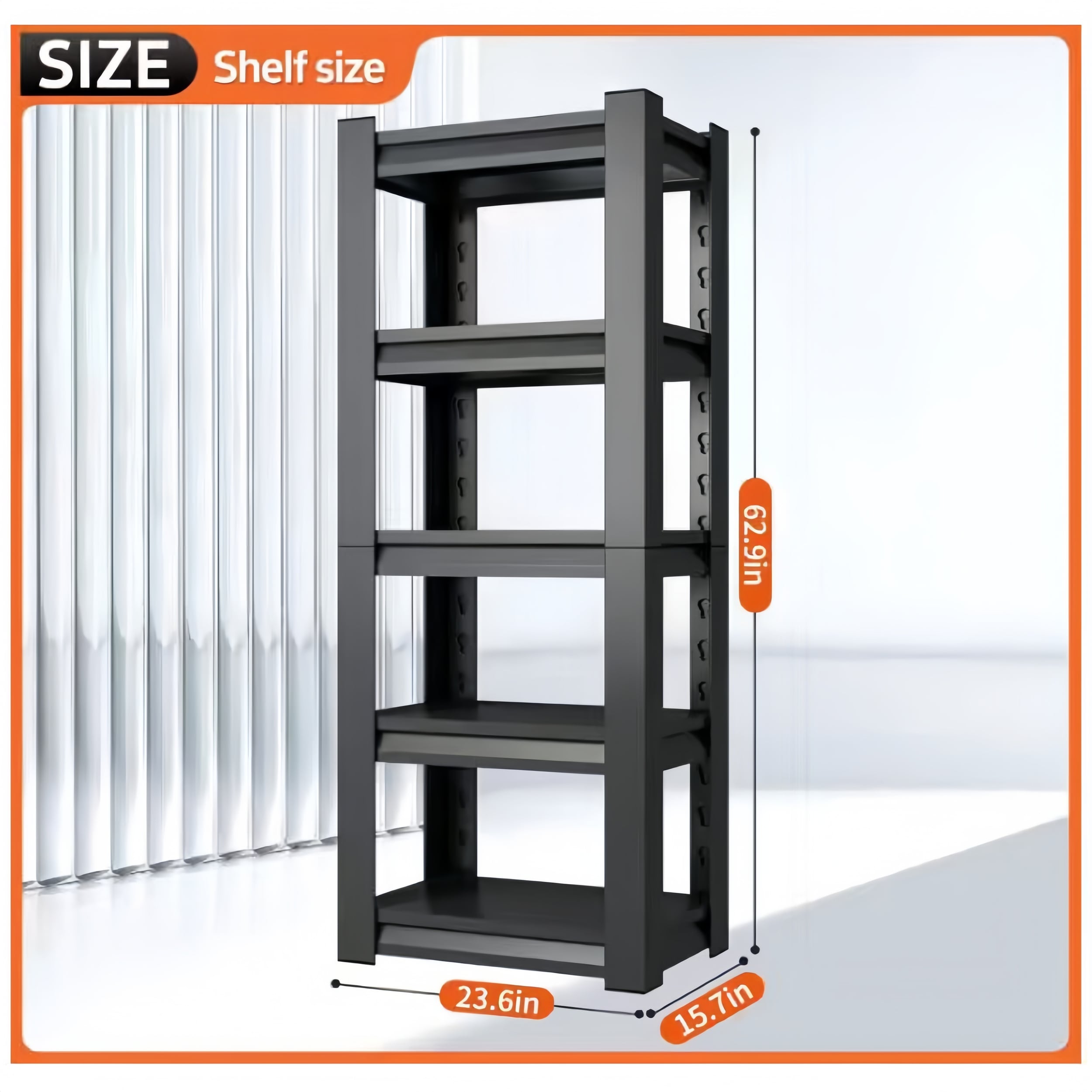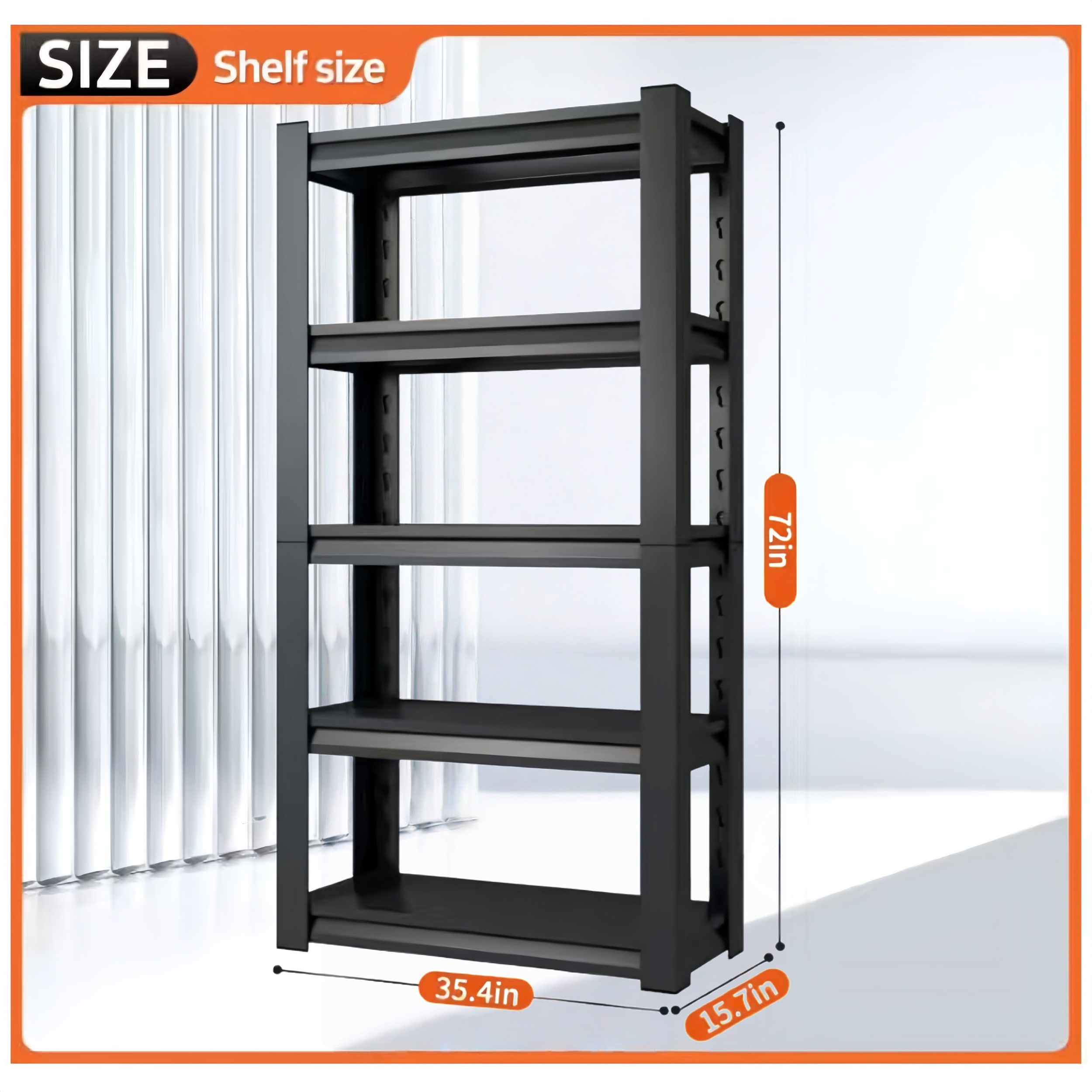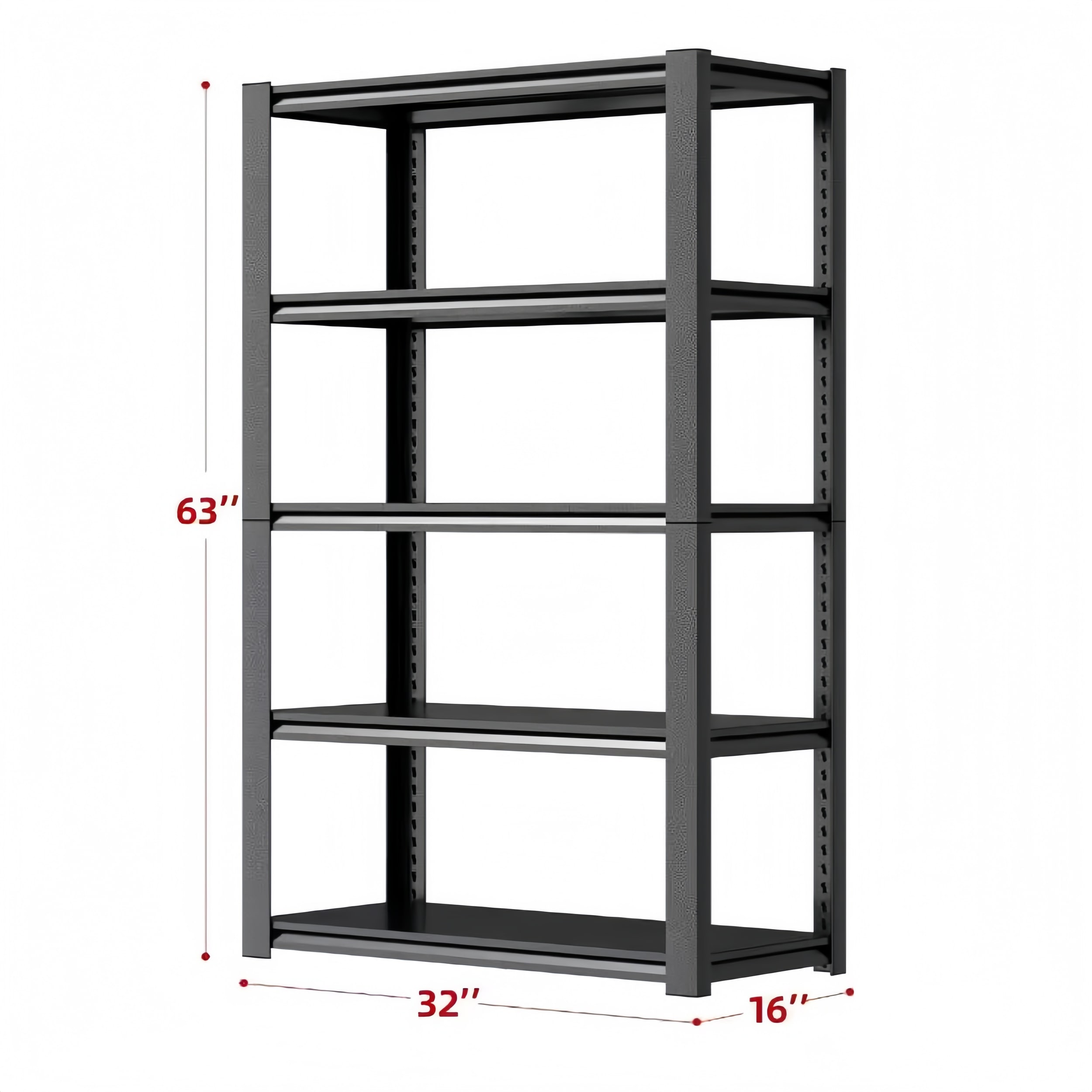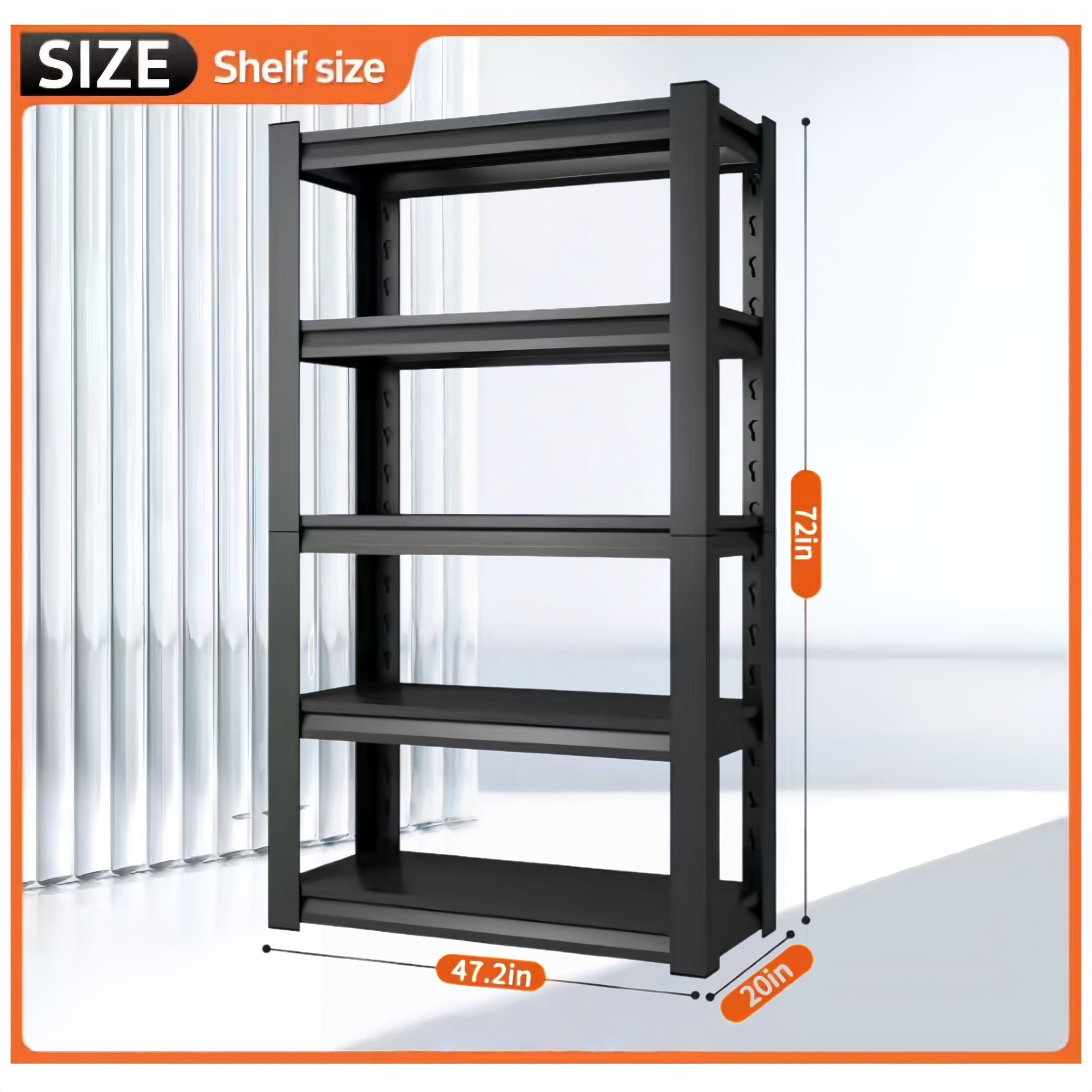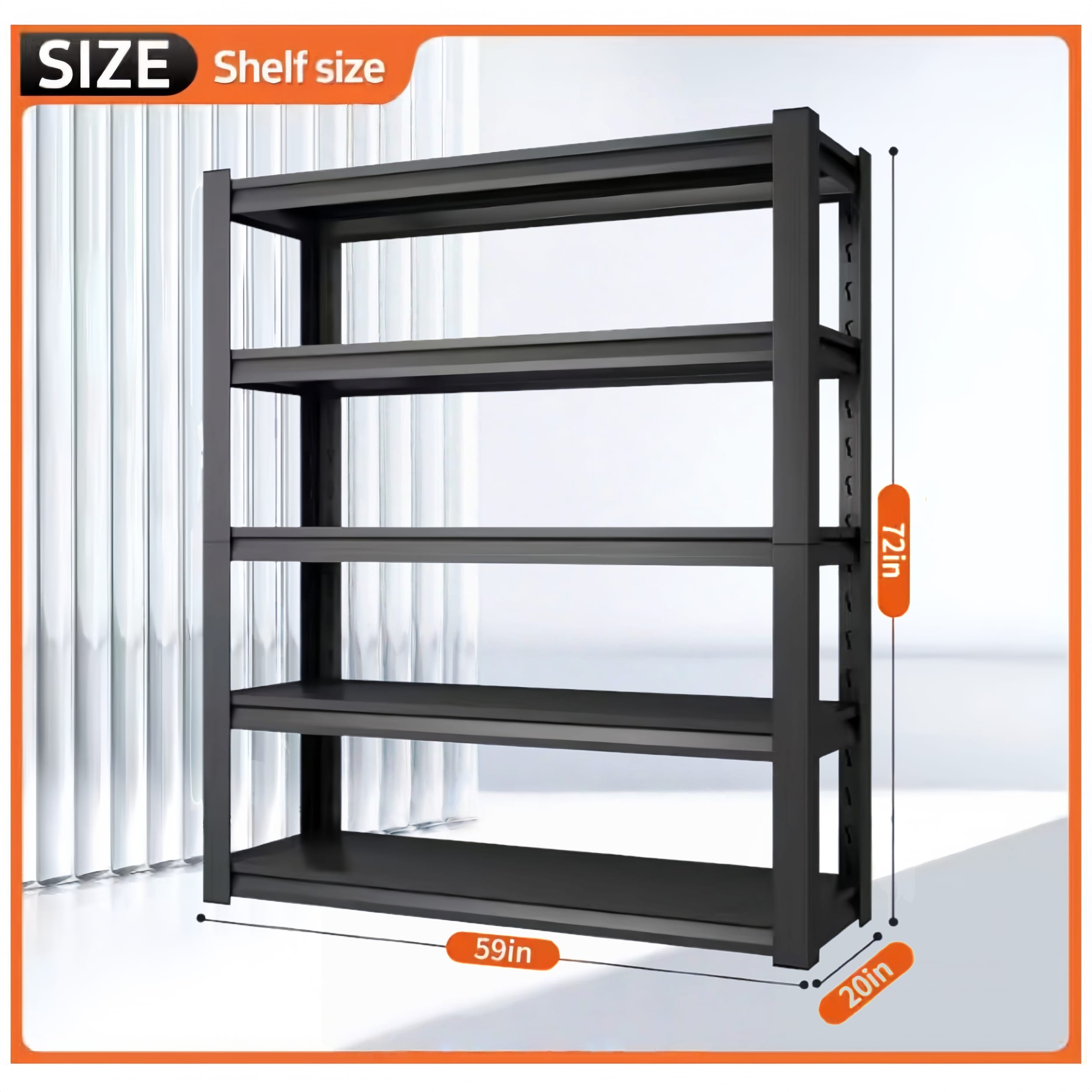 Ink-Black 5-Tier Storage Shelves, Steel Shelf, Boltless Assembly for Garage Shed