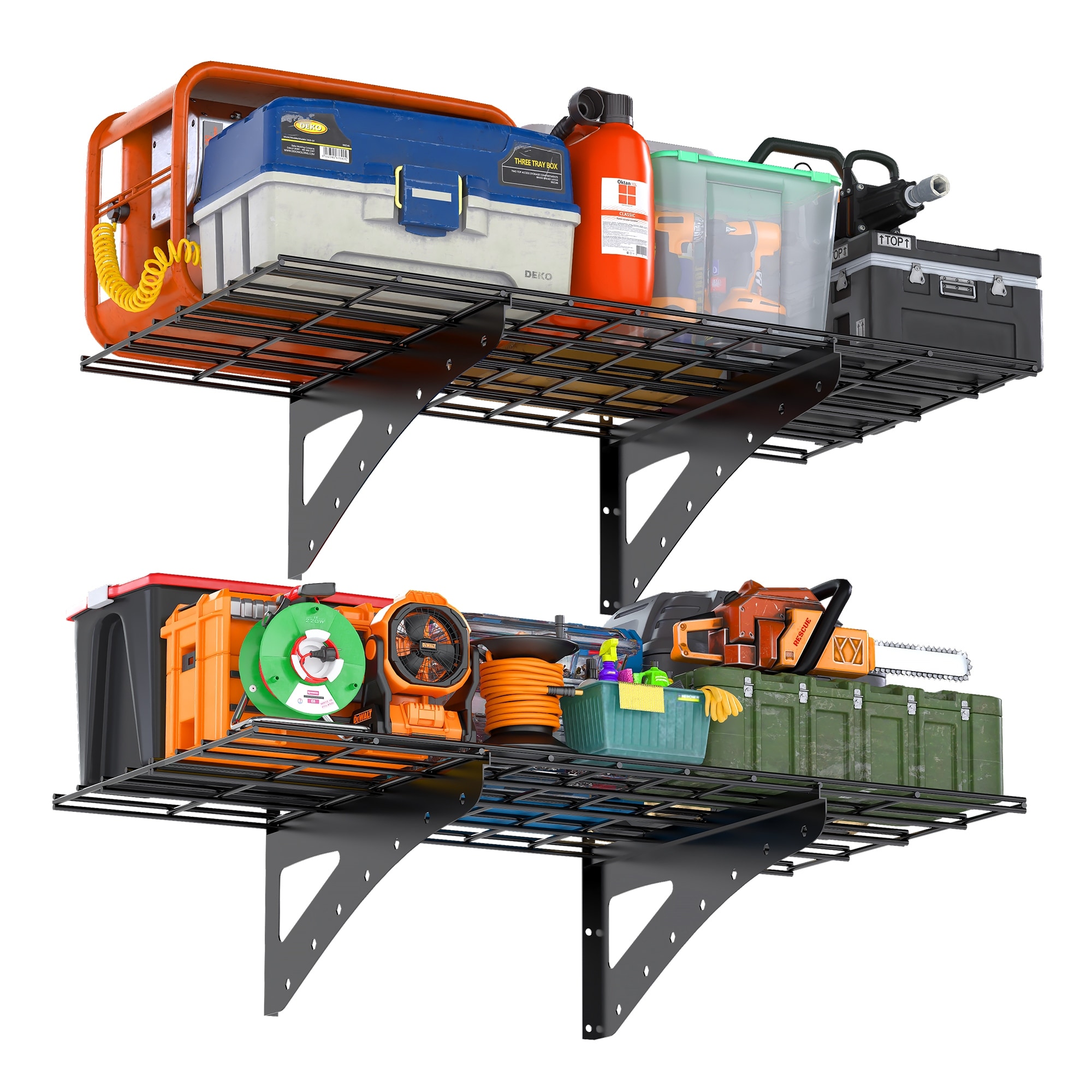 Black Metal Wall-Mounted Shelf Bracket 2-Tier Heavy Duty Storage Rack - 48x 24 x 12 in