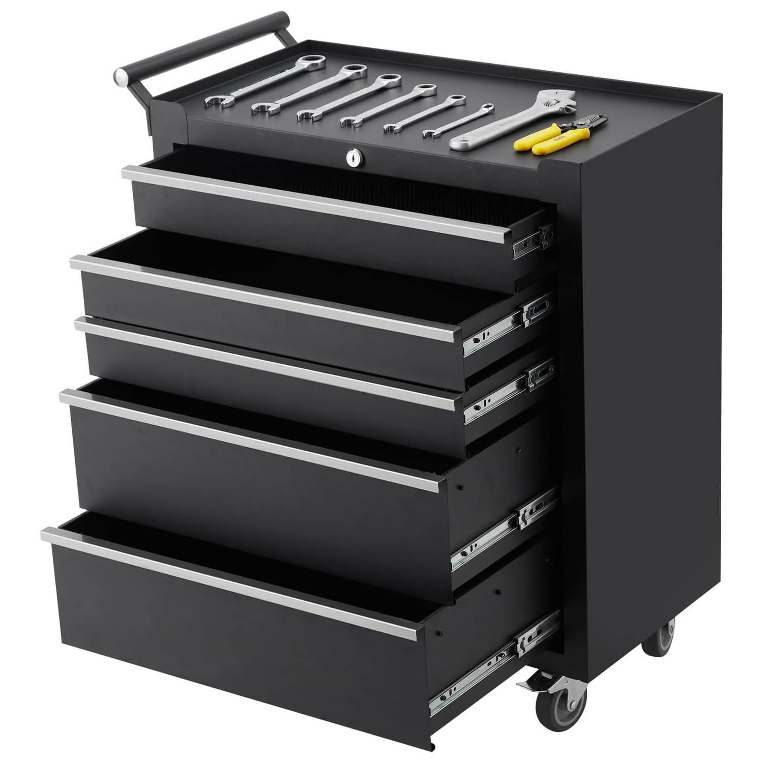 5-Drawers Tool Storage Cabinet, Toolbox with Wheels - N/A