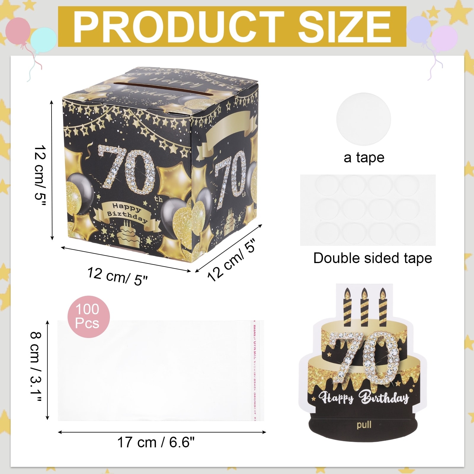 Birthday Money Box for Cash Gift, Birthday Money Pull Box with 100pcs Transparent Bags - Black Gold