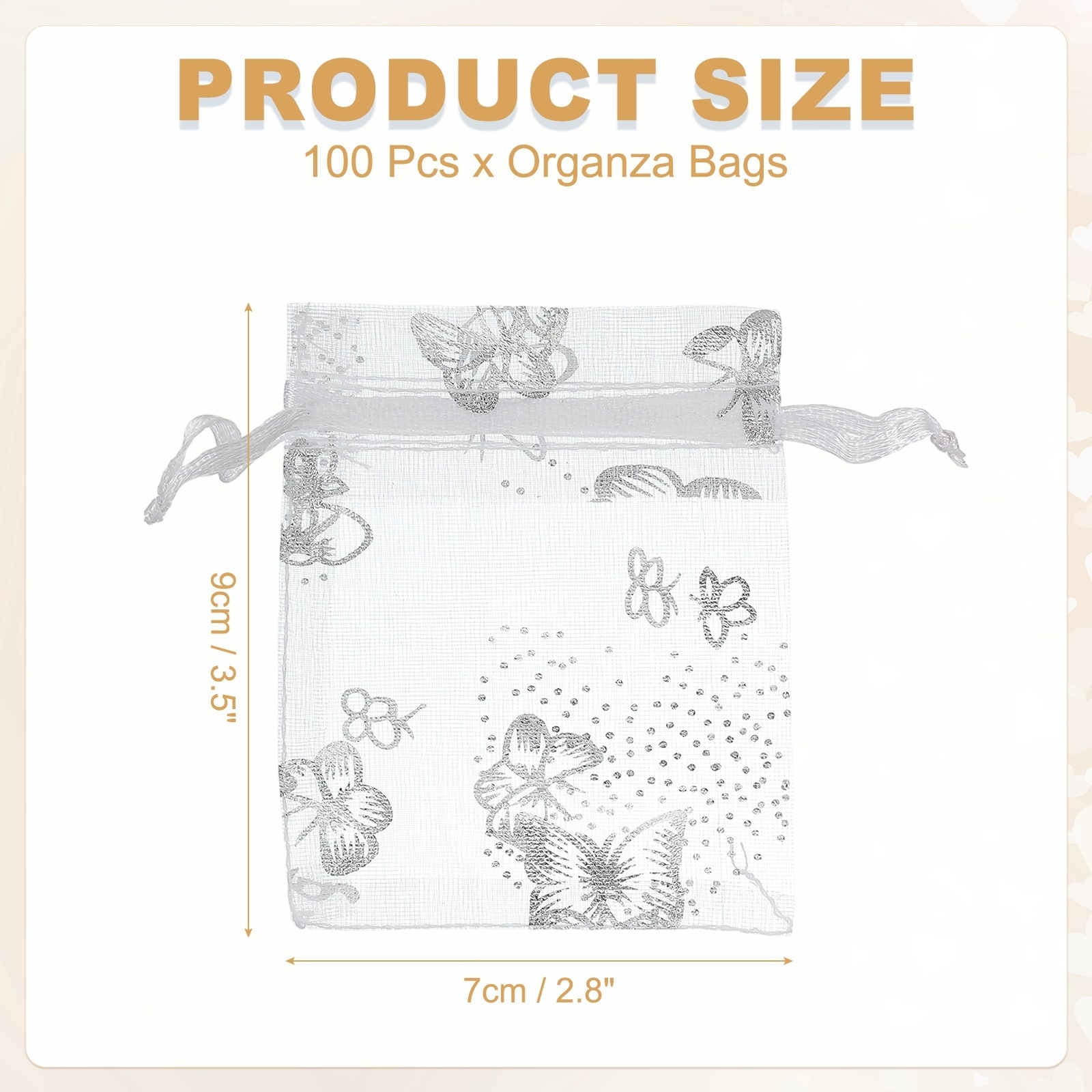 Organza Bag, Mesh Candy Pouch with Drawstring Butterfly Jewelry Gift Bag for Wedding Christmas Festival Makeup Supply