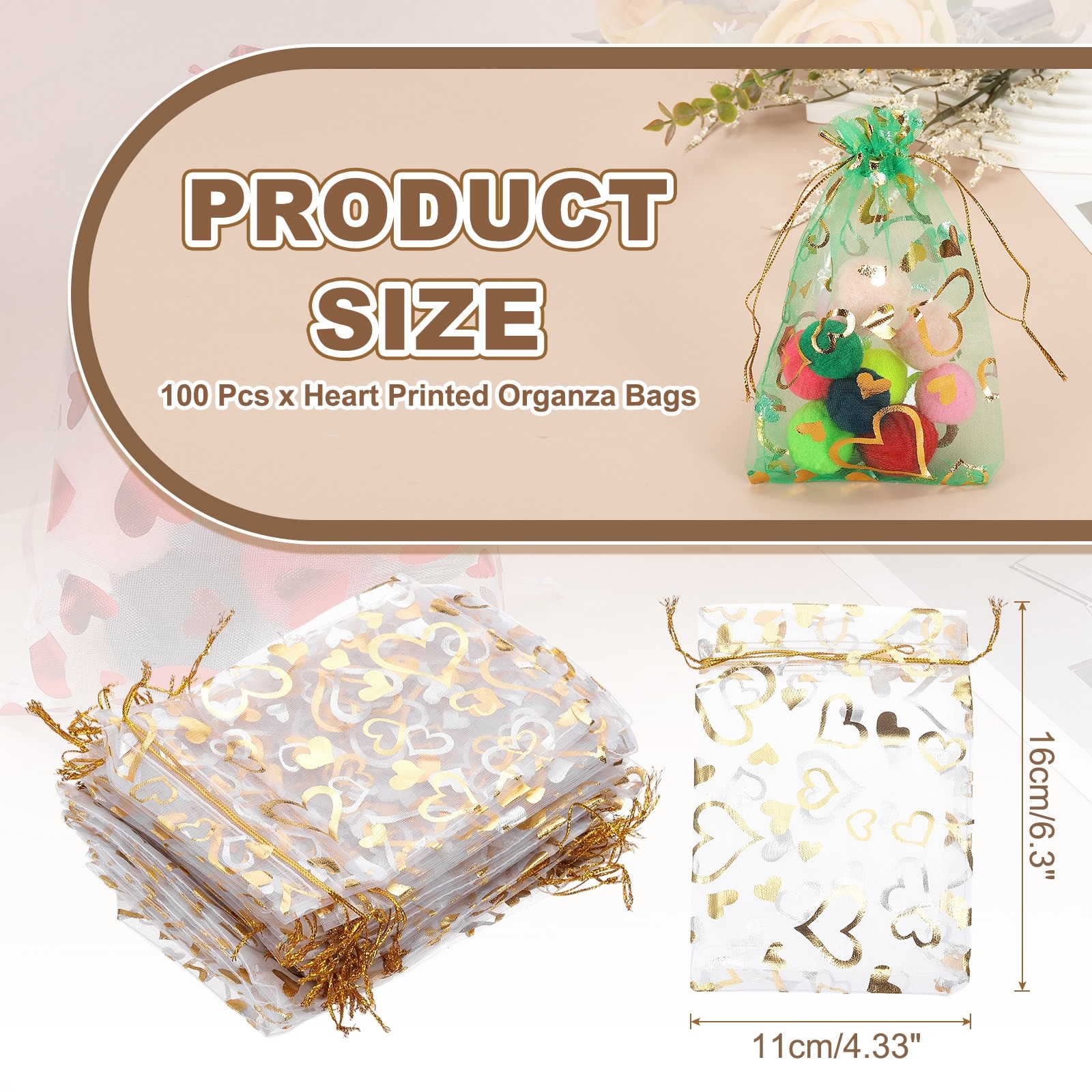 Organza Bag, Sheer Flower Heart Mesh Bags Drawstring Gift Bags Bulk Party Favor Bag Jewelry Pouches