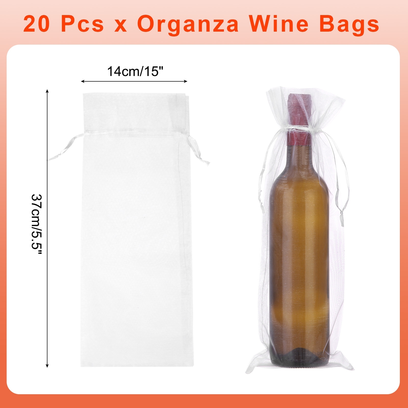 Organza Wine Bags, Gift Wrap Bags Sheer Mesh Wine Bottle Bag Drawstring Pouches Reusable for Party Wedding Favors