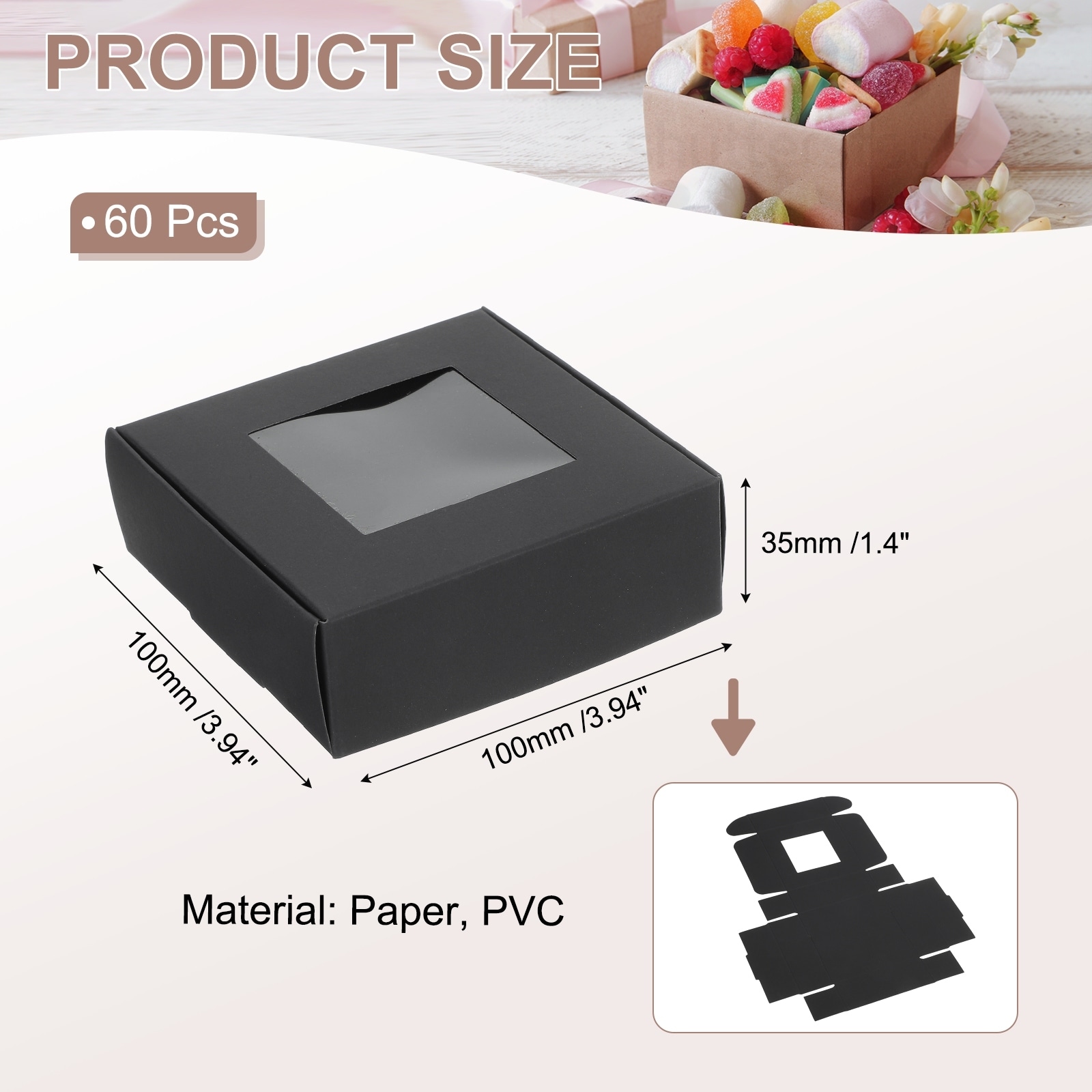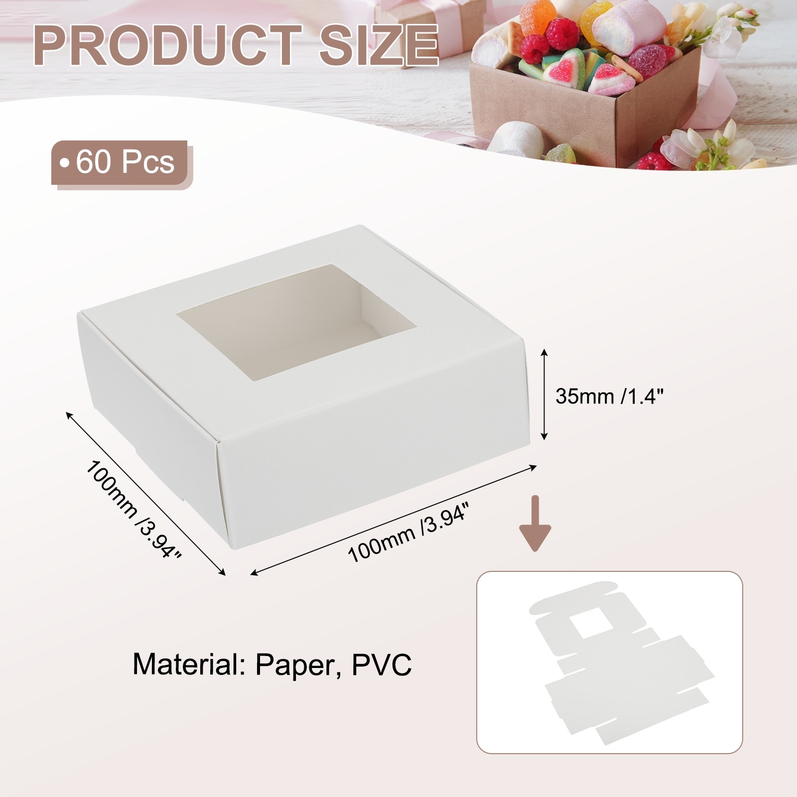 Paper Boxes with Window, Candy Gift Box for Wedding Party Favor Treats - 3.4"x2.4"x1.2"