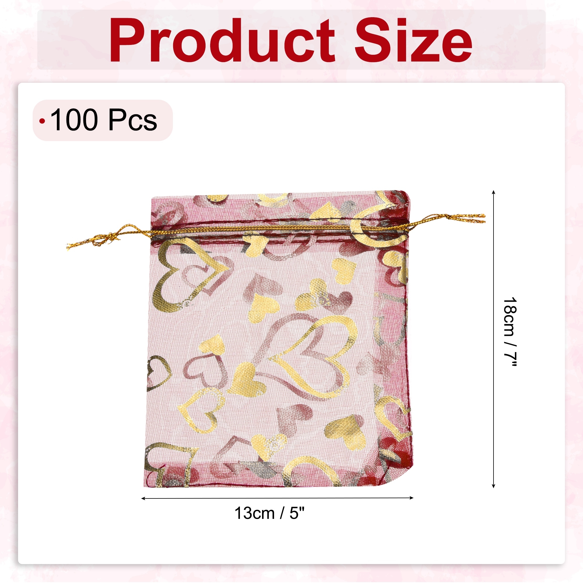 Organza Bag, Sheer Heart Mesh Bags Drawstring Gift Bags Bulk Party Favor Bags