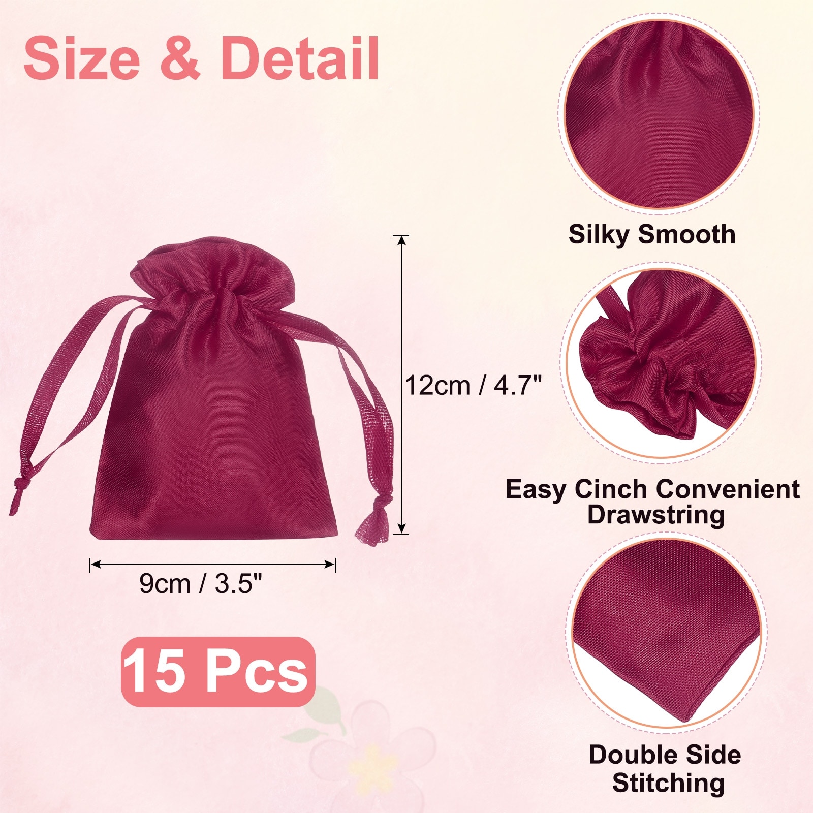 Satin Bags with Drawstring, 3Pack 3x4 Inch Wedding Favor Bags, 3 Color - 3x4 Inch