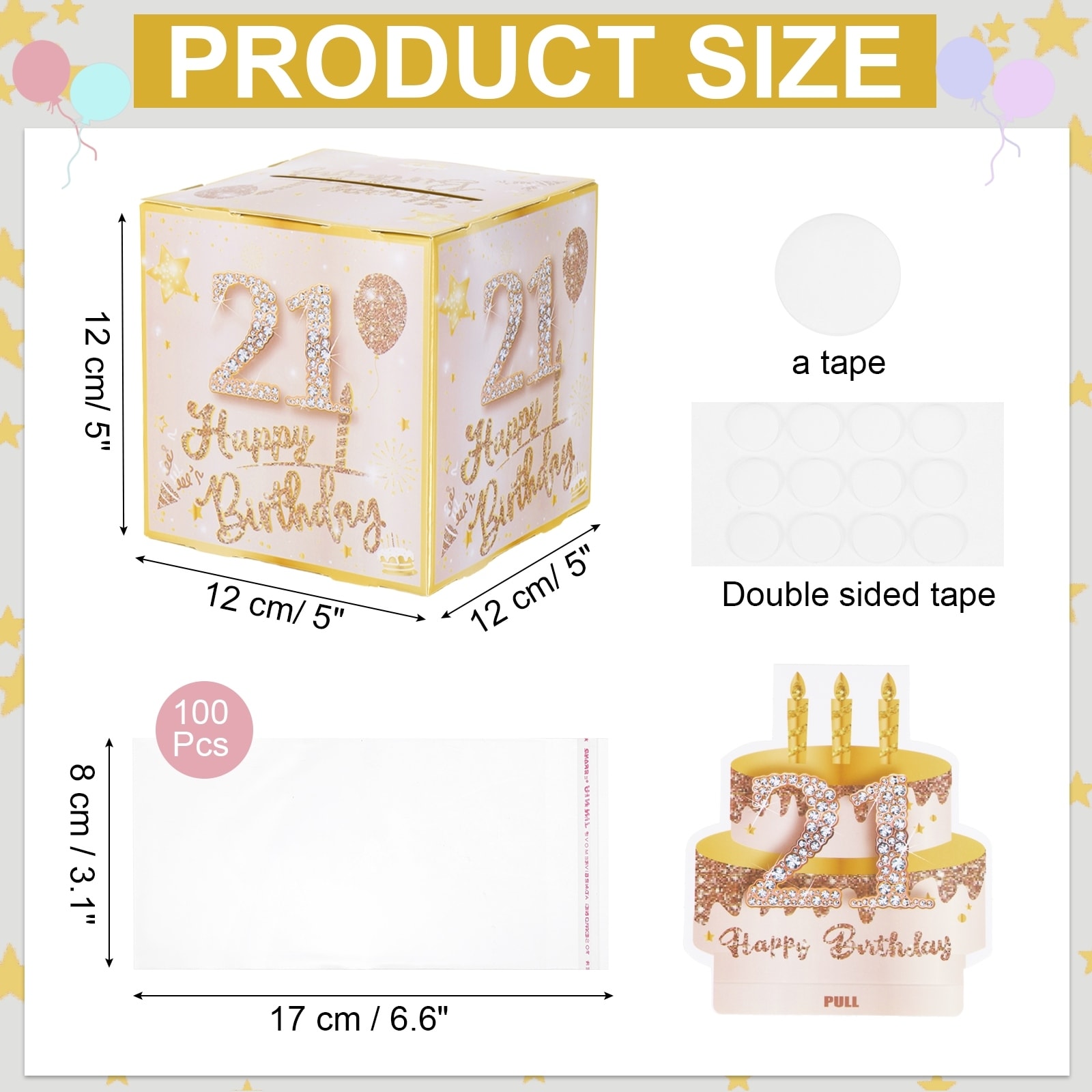 Birthday Money Box for Cash Gift, Birthday Money Pull Box with Transparent Bags for Birthday Surprise - Pink Gold