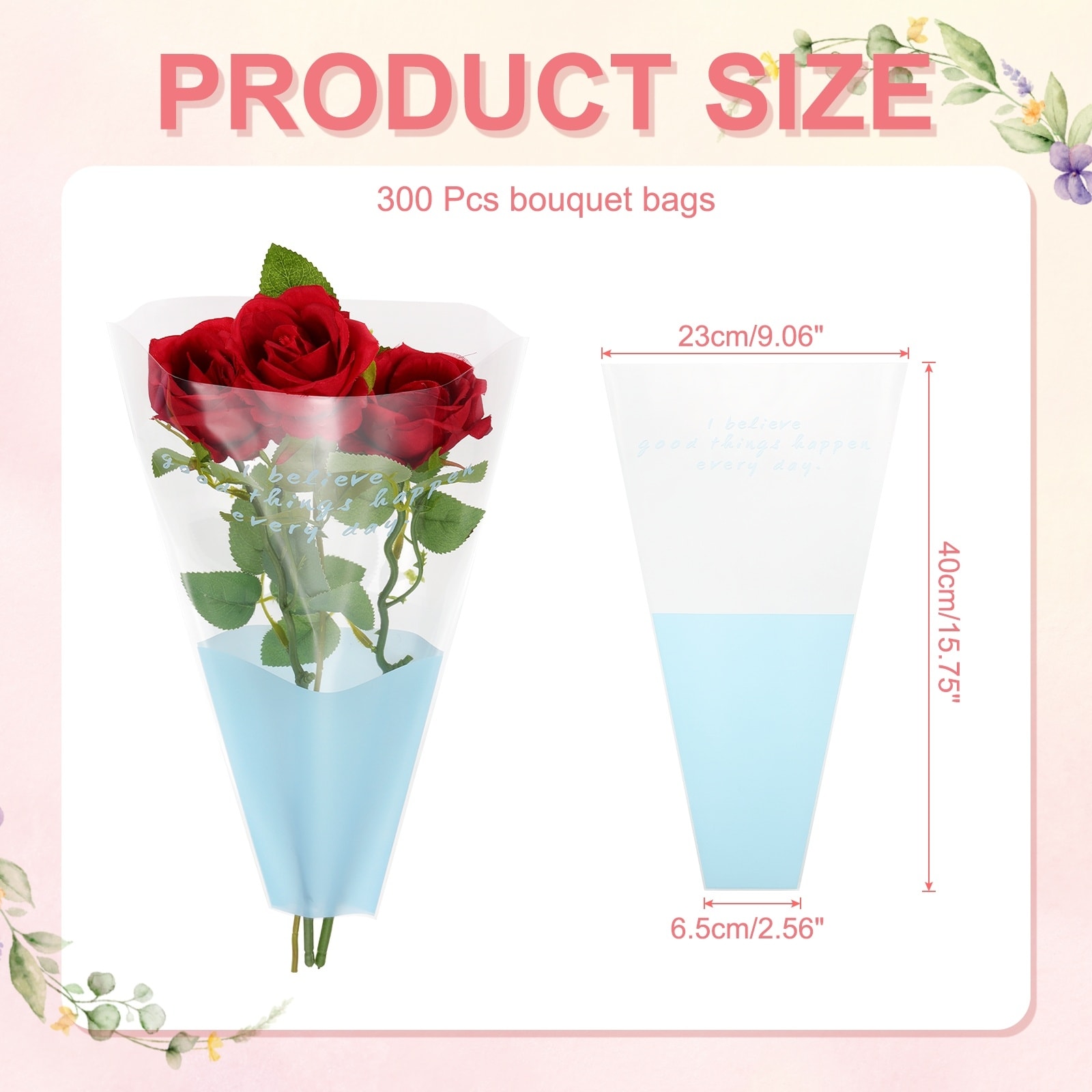 Plastic Rose Floral Bouquet Bags Single Flower Sleeves Wrapping Bags for Wedding, Birthday, Retail Packaging - 1.3ft