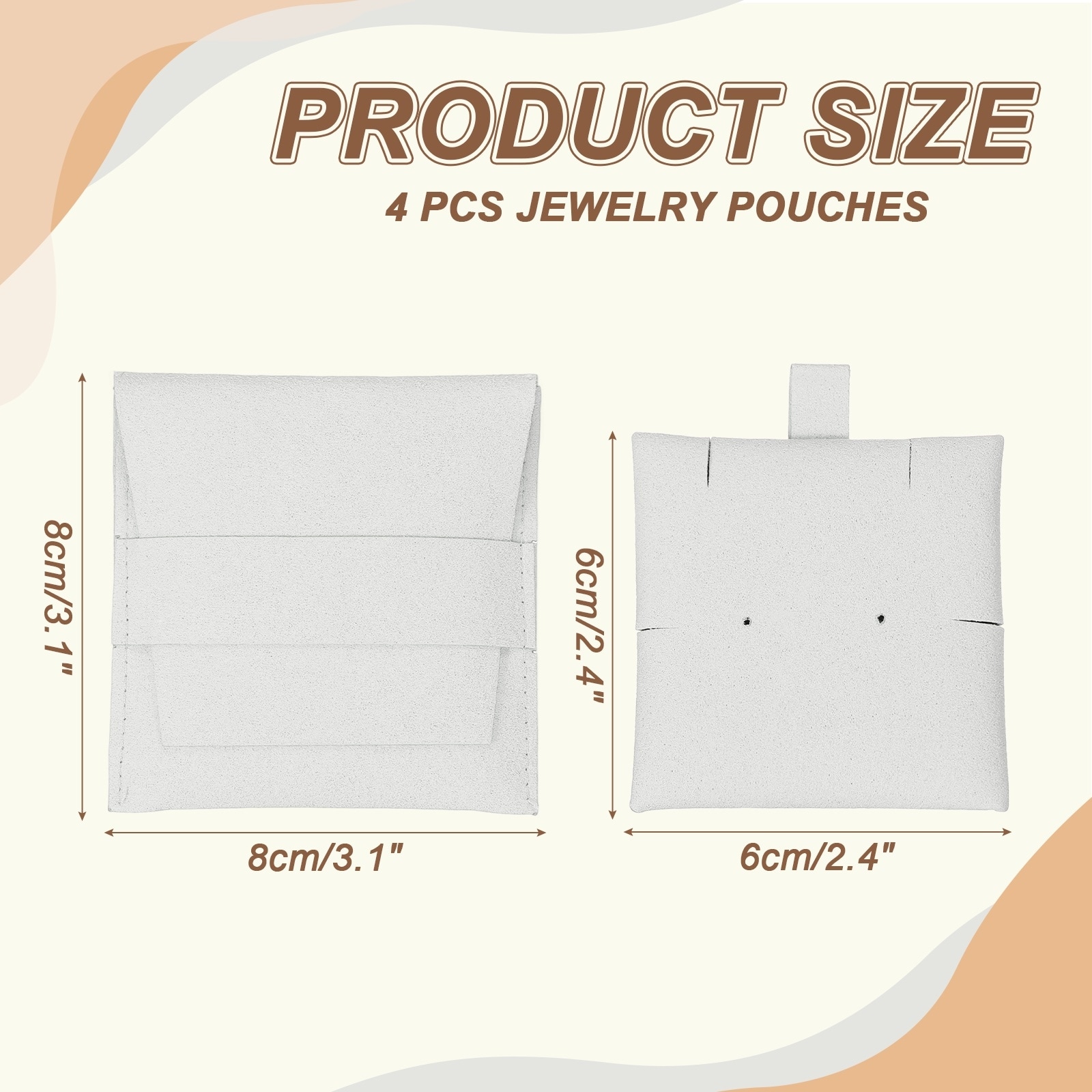 4 Pcs Microfiber Jewelry Pouches with Band, 3.1x3.1 Inch Light Gray - 3.1x3.1 Inch