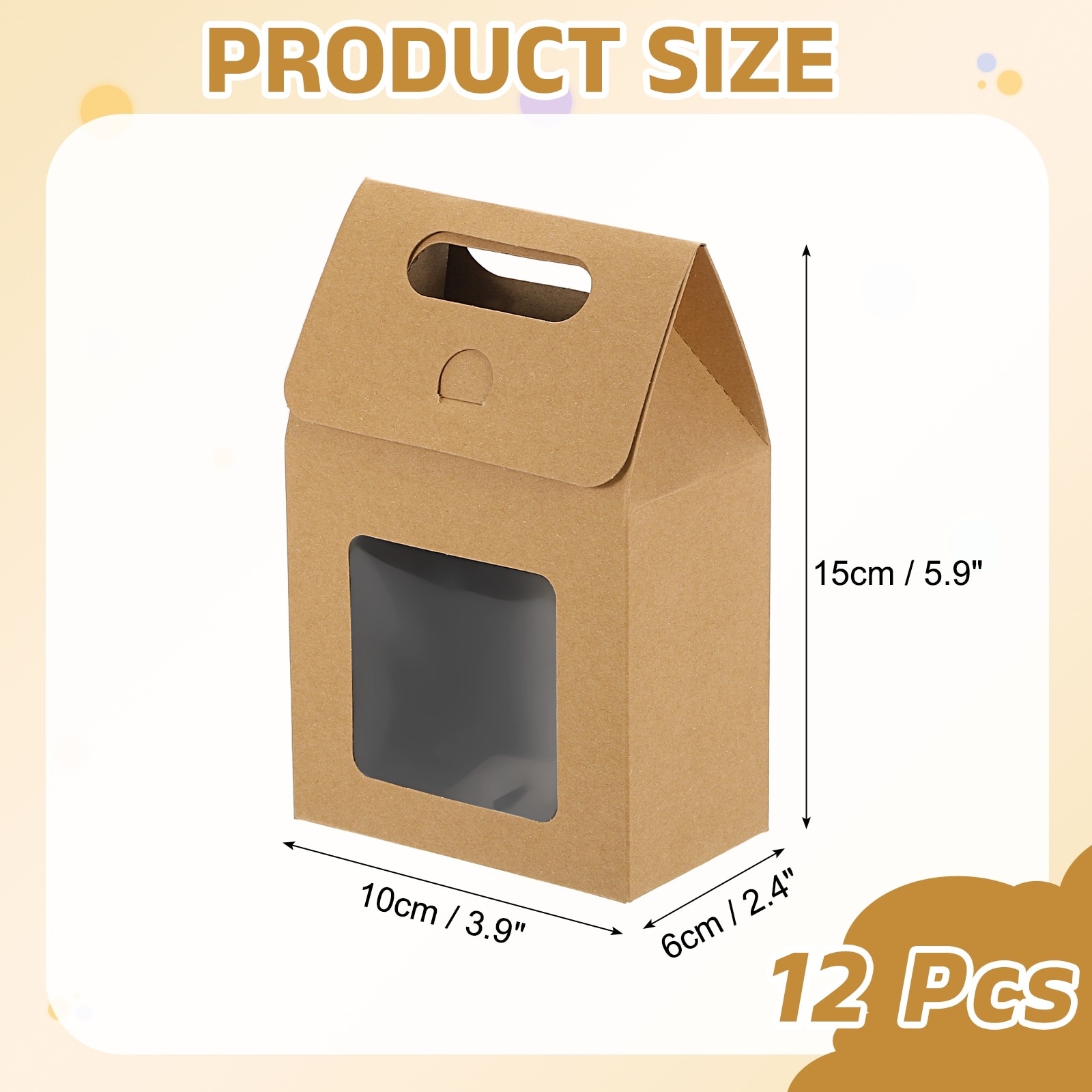 Kraft Paper Bags, Gift Boxes with Clear Window and Handle - 15cm L