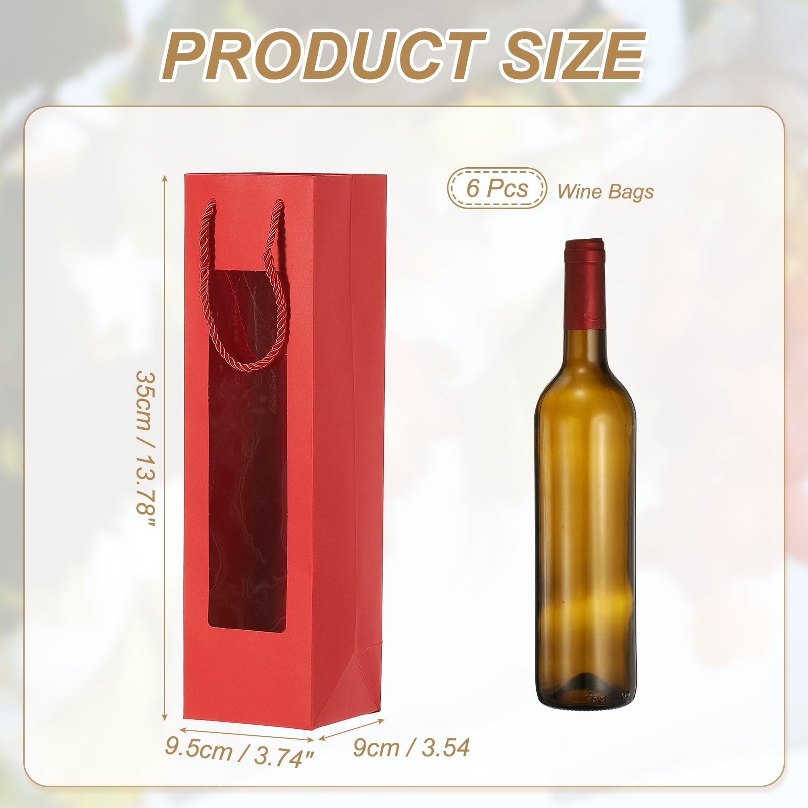 Wine Gift Bag, Bottle Kraft Paper Wine Bags Gift Tote Carrier Bottle Bag with Handles Bulk - 13.7" x 3.7" x 3.5"