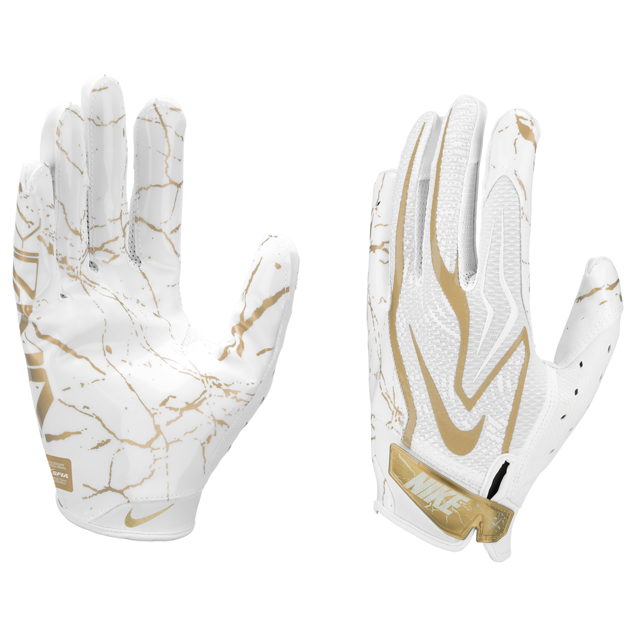 Nike Vapor Jet 8.0 Metallic Adult Football Gloves White/Metallic Gold