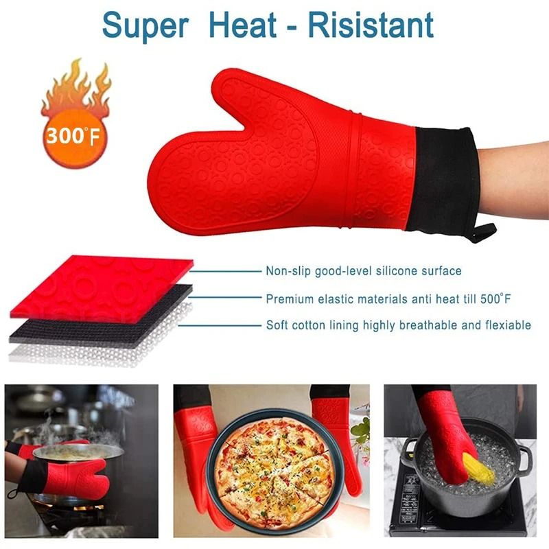 Professional Oven Gloves Heat Resistant, Non Slip Grip & Soft Inner Lining For Grilling, Baking, And BBQ red