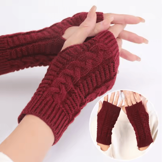 Chunky Knit Faux Wool Fingerless Gloves 1