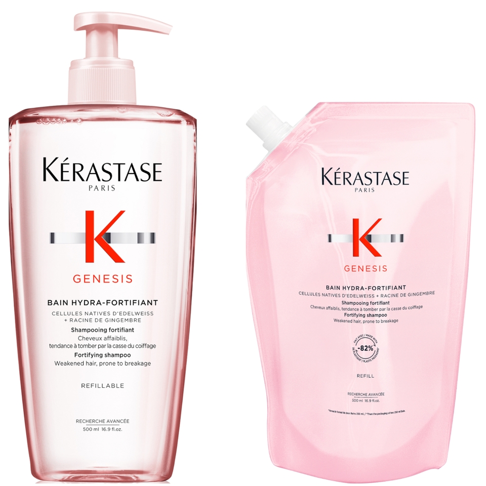 Kérastase Genesis Hydra-Fortifiant Refillable Shampoo And Refill Pouch Duo 500ml For Hair Fall Due To Breakage
